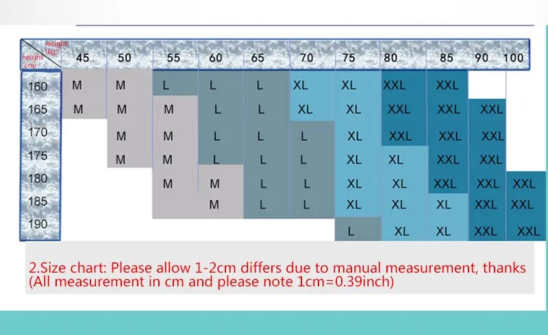 Таблица размеров: пожалуйста, учитывайте разницу в 1-2 см из-за ручного измерения, спасибо(Все размеры указаны в см, обратите внимание: 1 см = 0,39 дюйма)