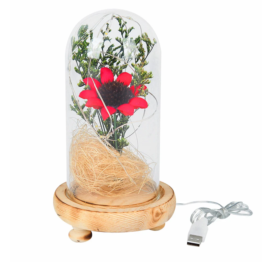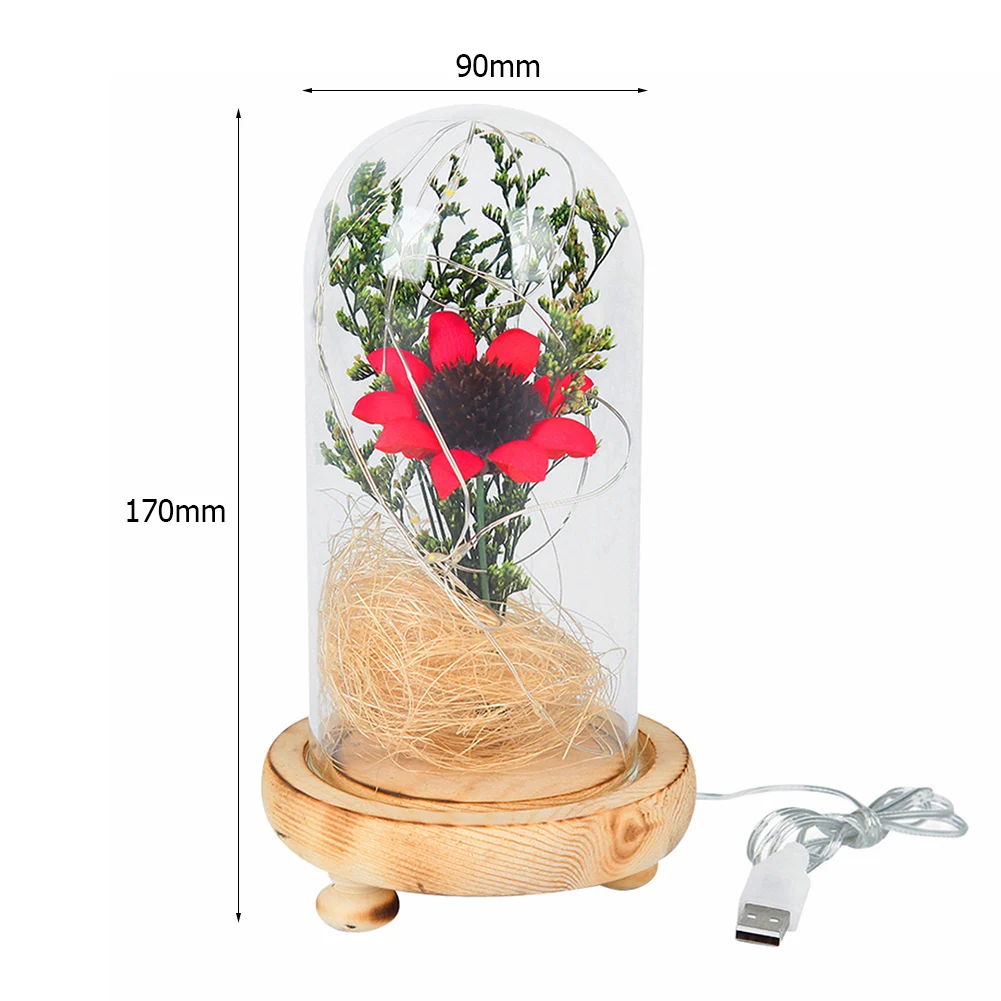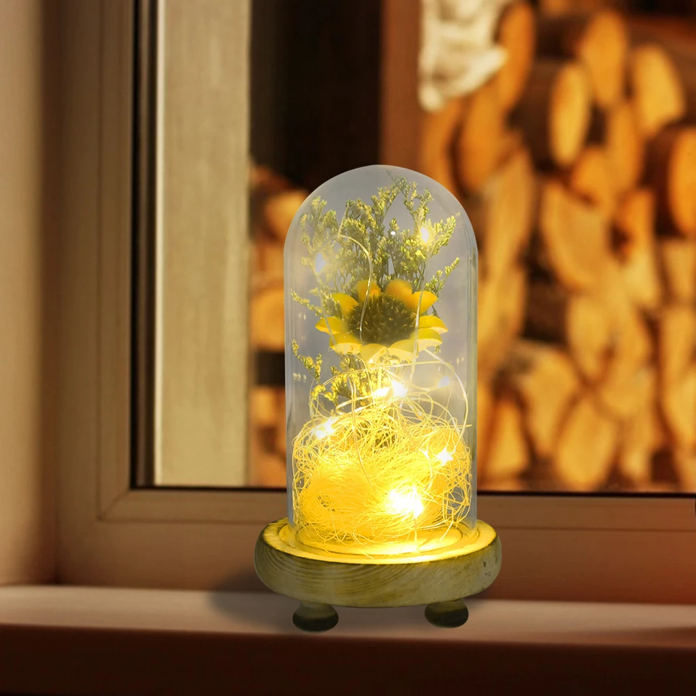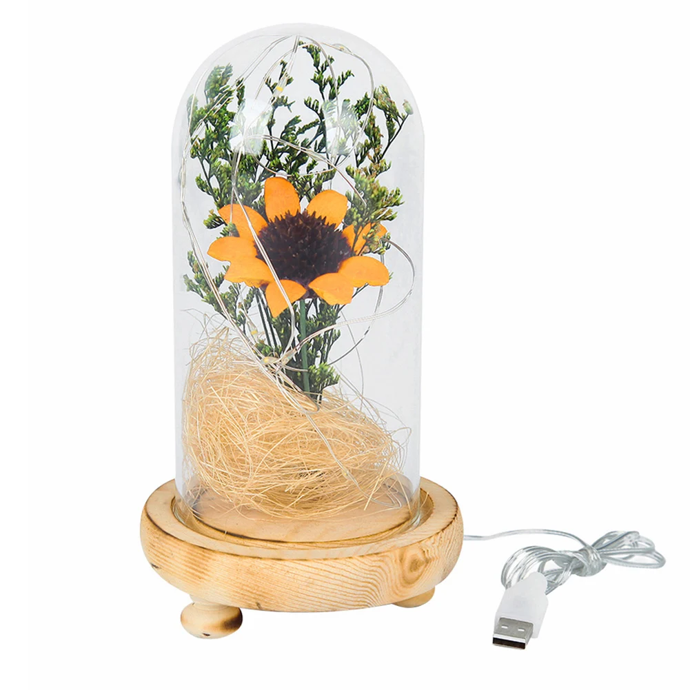 Букет подсолнухов сушеные цветы в стеклянном куполе с базой микро пейзаж теплый светильник прикроватная Ночная лампа украшение дома на День святого Валентина подарки на день матери подарок