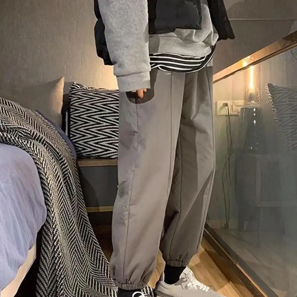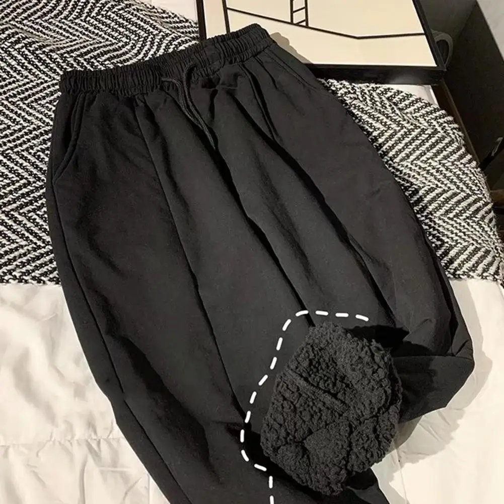 Мужские брюки; Утепленные плюшевые зимние брюки с завязками на лодыжке для повседневной носки