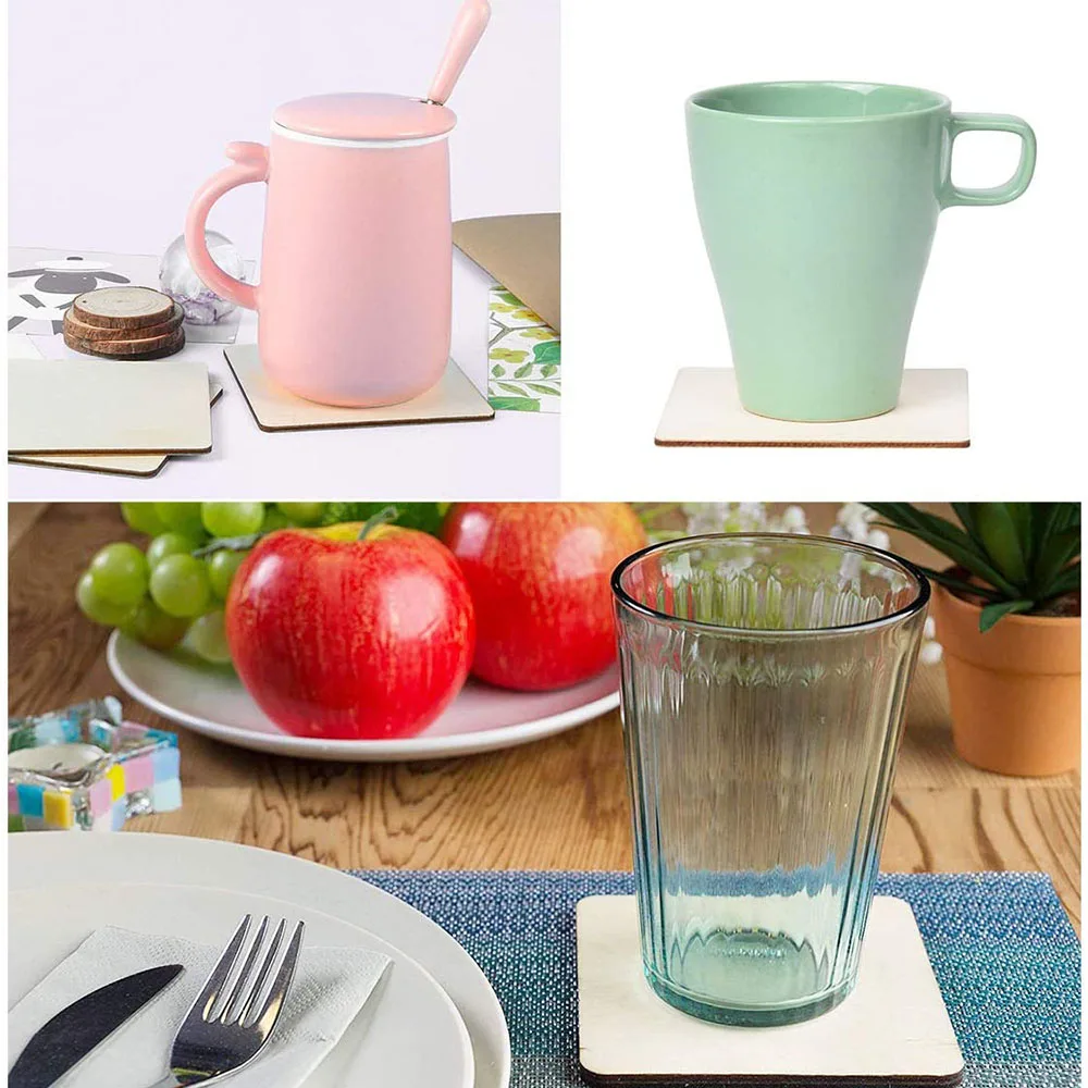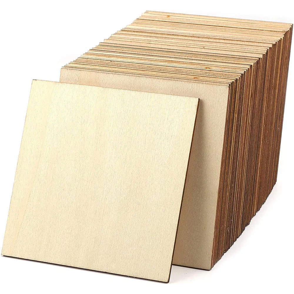 Квадратные деревянные кусочки пустое дерево без отделки, 2 шт., 10 см x 10 см, натуральные деревянные квадраты, вырезы для рукоделия, подставки, домашний декор