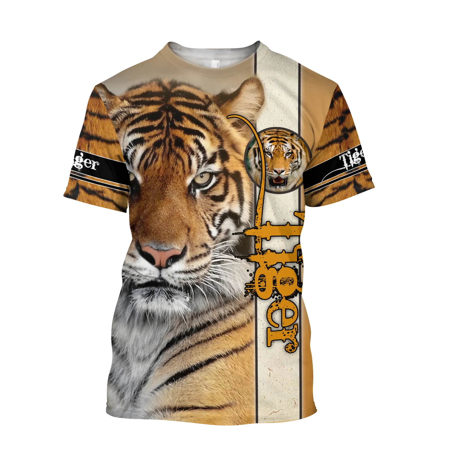 Повседневная футболкарубашка для отдыха с 3D принтом тигра, модная летняя мужская футболка с круглым вырезом и коротким рукавом, размер куртки