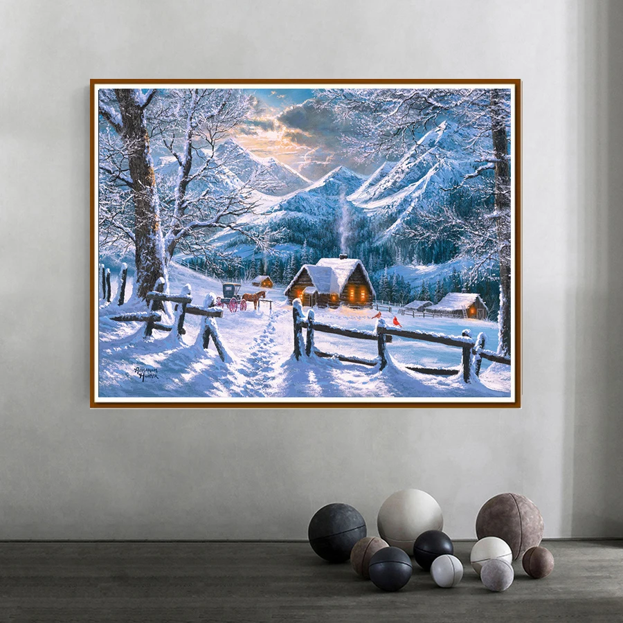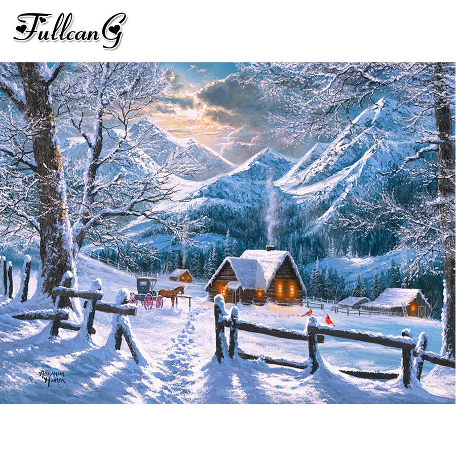 Алмазная живопись 5d сделай сам с изображением снежного дома стразы, вышивка зимним ландшафтом, вышивка крестиком комплекты, украшение для дома AA3020