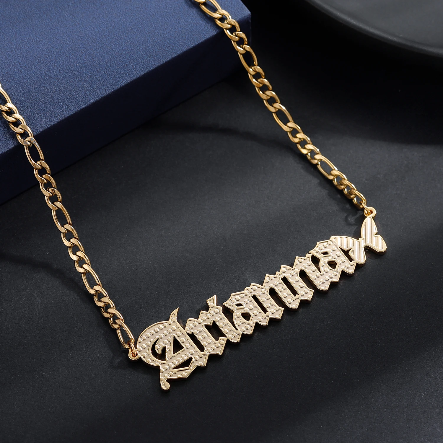 Индивидуализированное текстурированное Старое Английское ожерелье с бабочкой из нержавеющей стали и подвеска из 18-каратного золота на заказ для подарка женщине