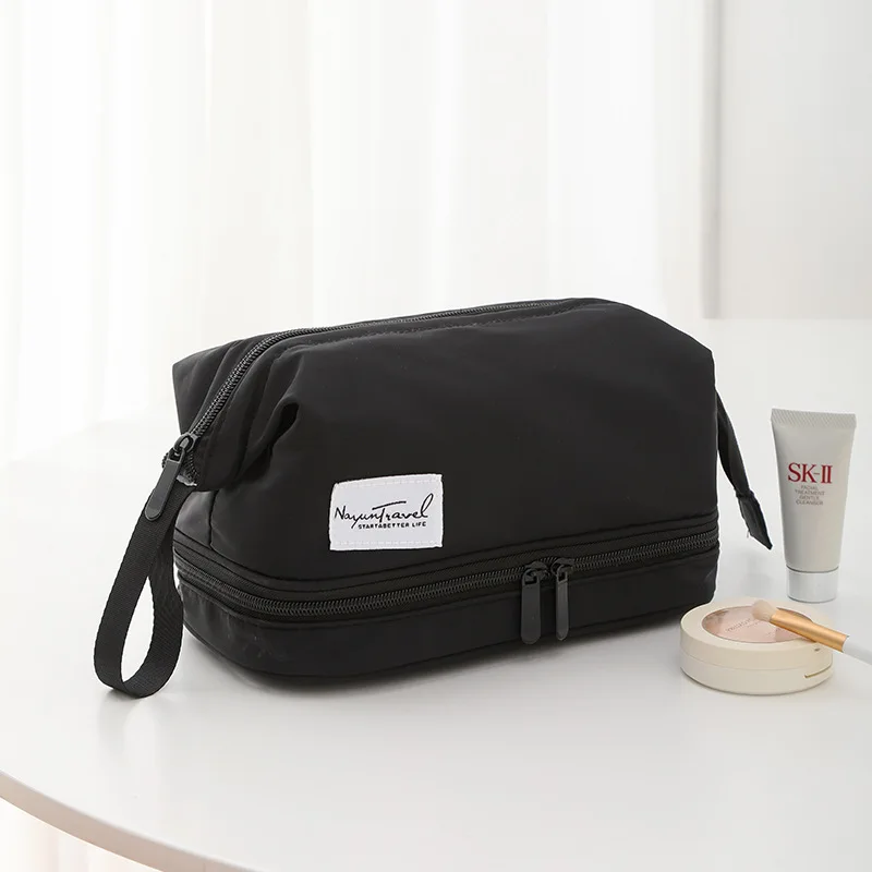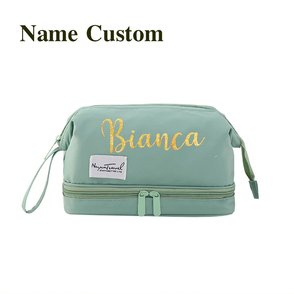 Простая двухслойная косметичка с индивидуальным названием, вместительная портативная женская большая сумка для хранения, Портативная сумка для туалетных принадлежностей