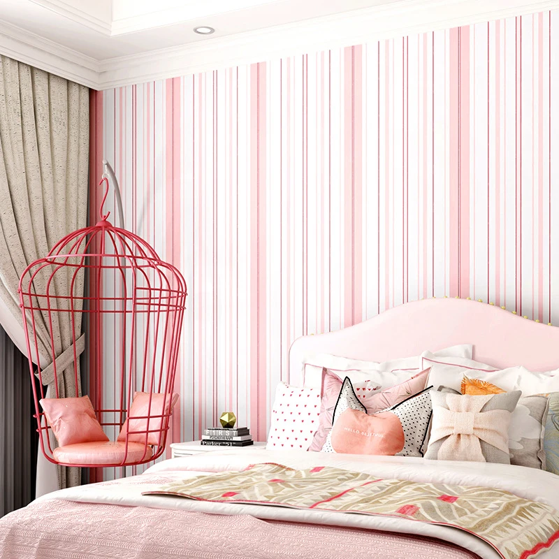 Нетканые полосатые обои розовая принцесса детская комната теплые девушки спальня гостиная украшение дома наклейки на стену FYSWPJANG