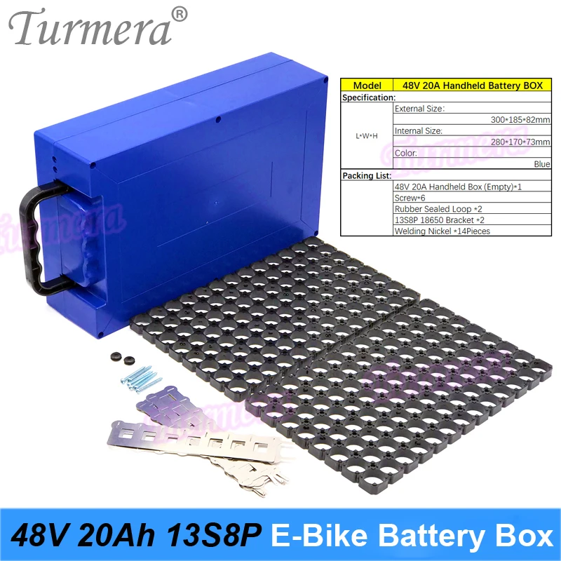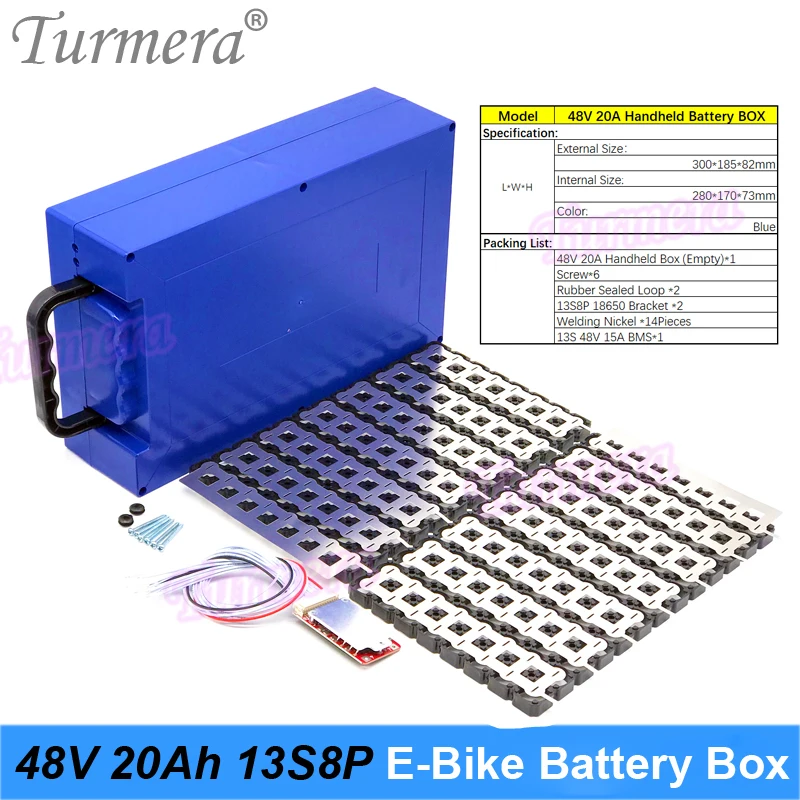 Коробка для хранения аккумуляторов Turmera 48 в 52 в 20 Ач для электровелосипеда с ручкой 13S8P 18650 Держатель аккумулятора Кронштейн сварочный никель и 13S 15A BMS