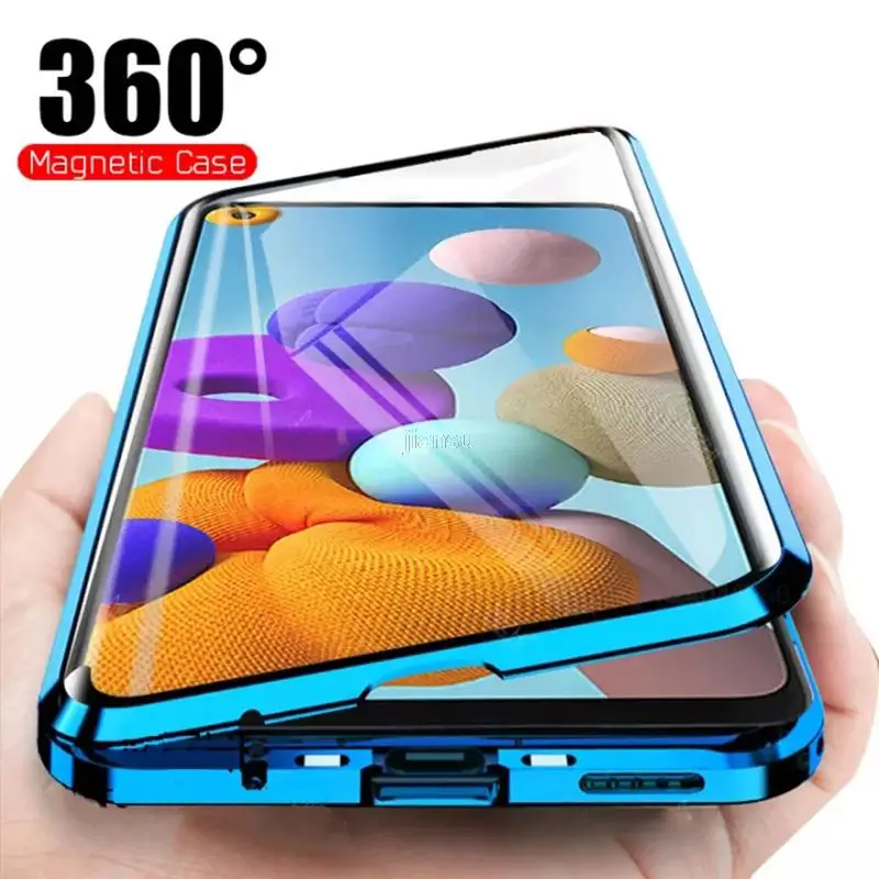 Магнитный металлический чехол для Xiaomi Redmi Note 10 9T 9 8 7 Pro K40 9A 9C, двухсторонний стеклянный чехол для Xiaomi 11 M3 X3, 360