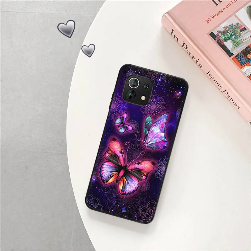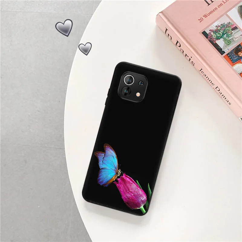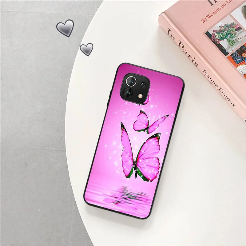 Чехол для телефона Xiaomi Mi 11 Lite 10 Ultra 5G 10T 11T 11X 11i Note 10 Pro 9 SE, мягкий черный чехол с розовыми бабочками и цветами