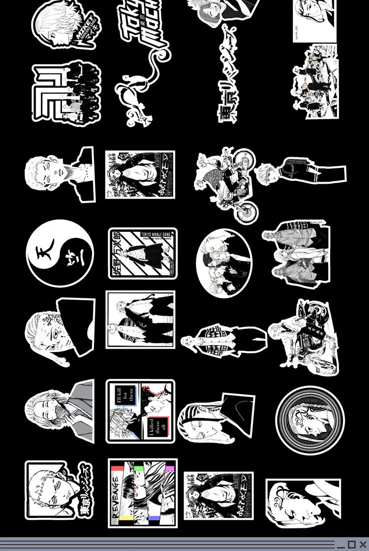 103050 шт., черно-белые наклейки в стиле граффити Токийский Мститель