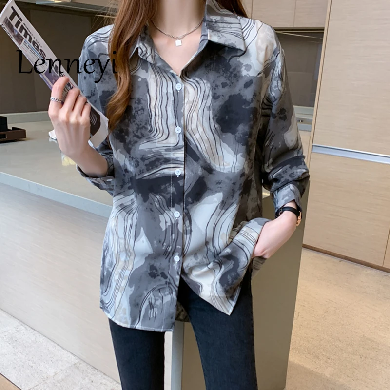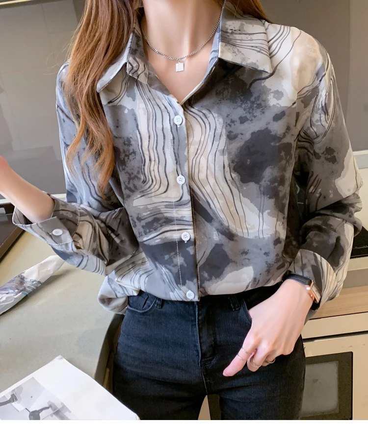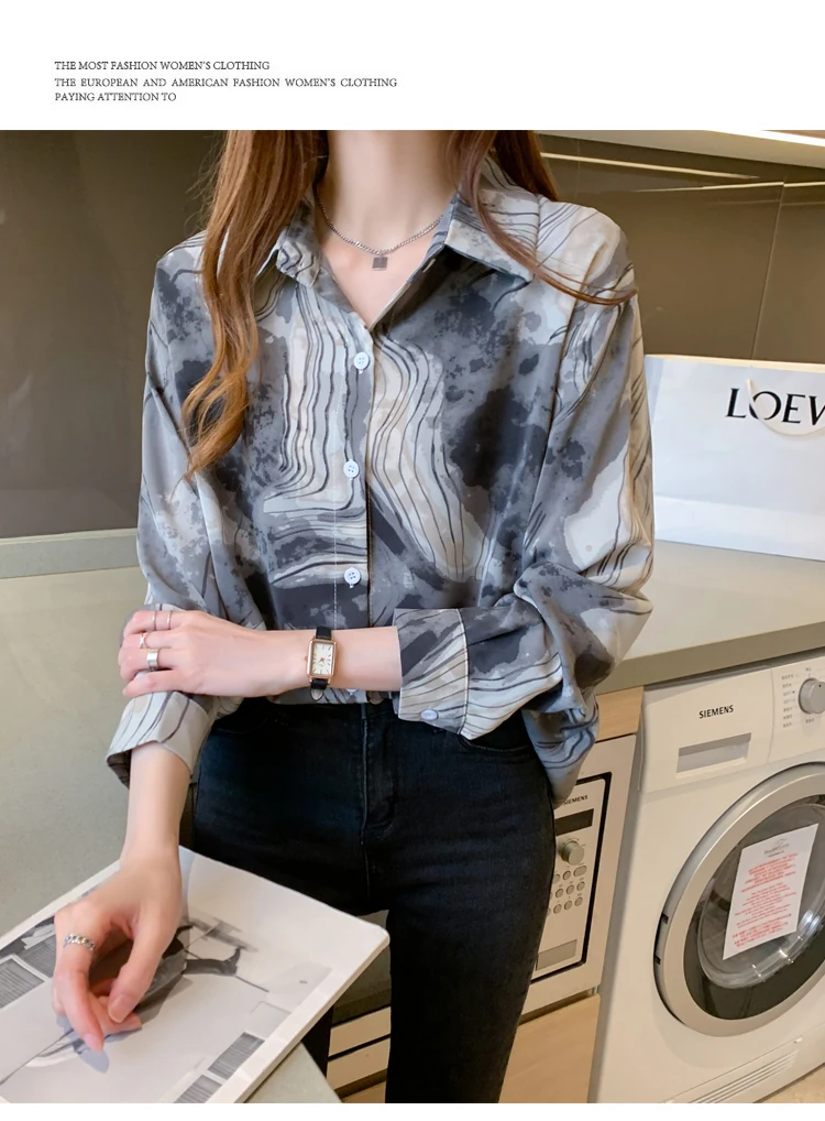 Модная женская рубашка, топы с цветочным принтом для женщин, Топ с длинным рукавом, женская рубашка-поло на пуговицах, осень 2021, базовая женская одежда