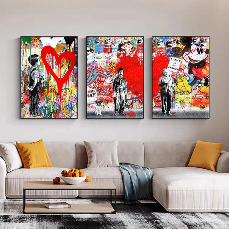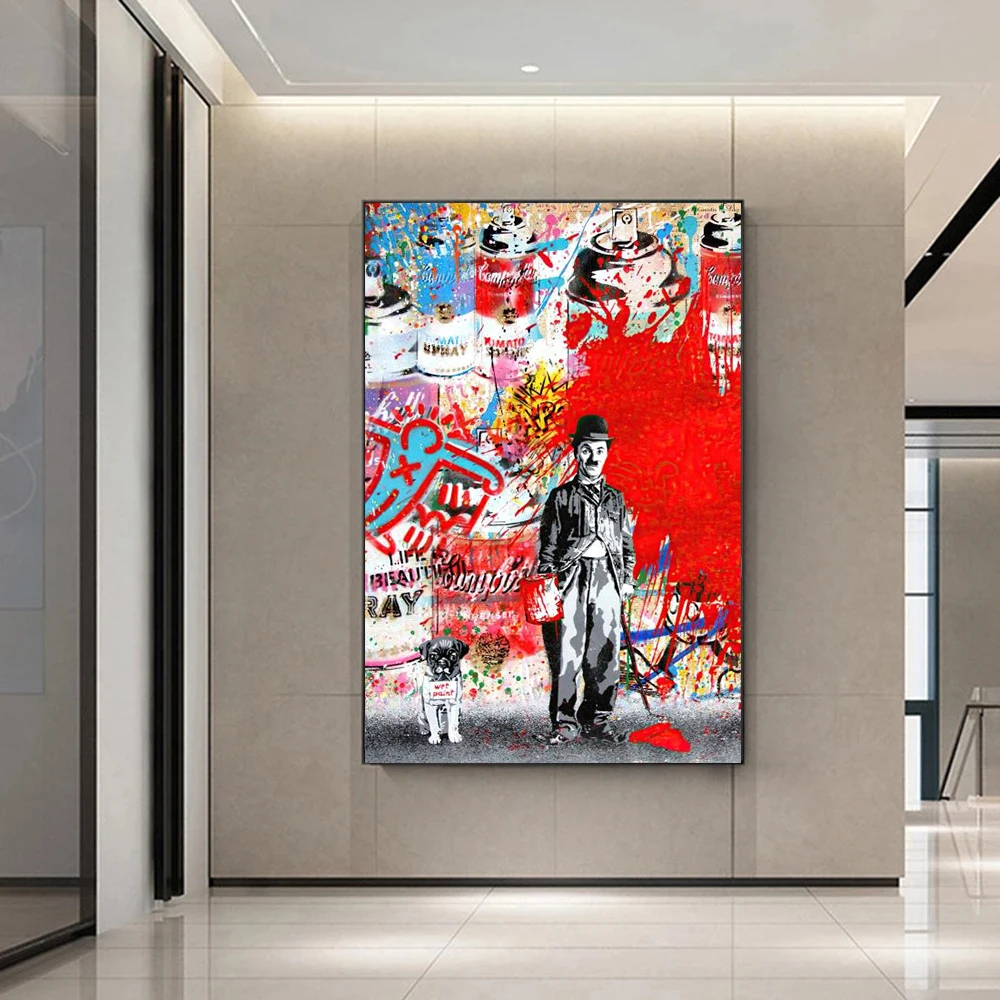 Граффити улица поп-арт дети Альберт Эйнштейн Чарли Чаплин поп-арт Печать на холсте поп-арт картины на стену для домашнего декора