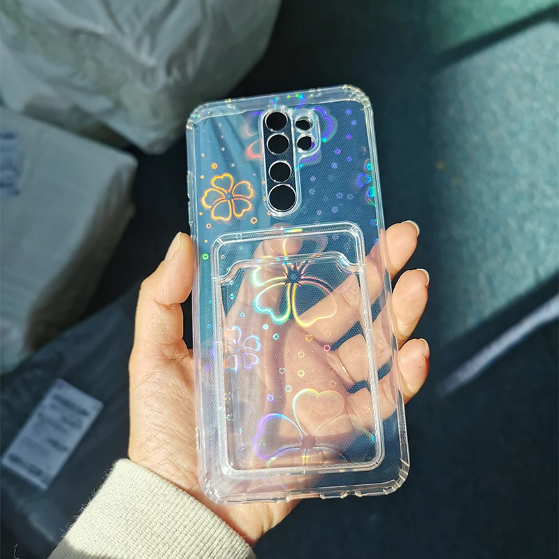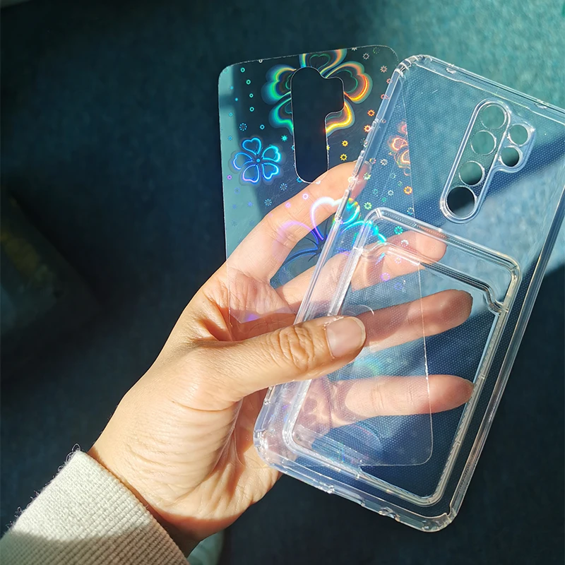 Feature 2Card package Fashion Gradient Laser Love Heart Pattern Clear Phone Case