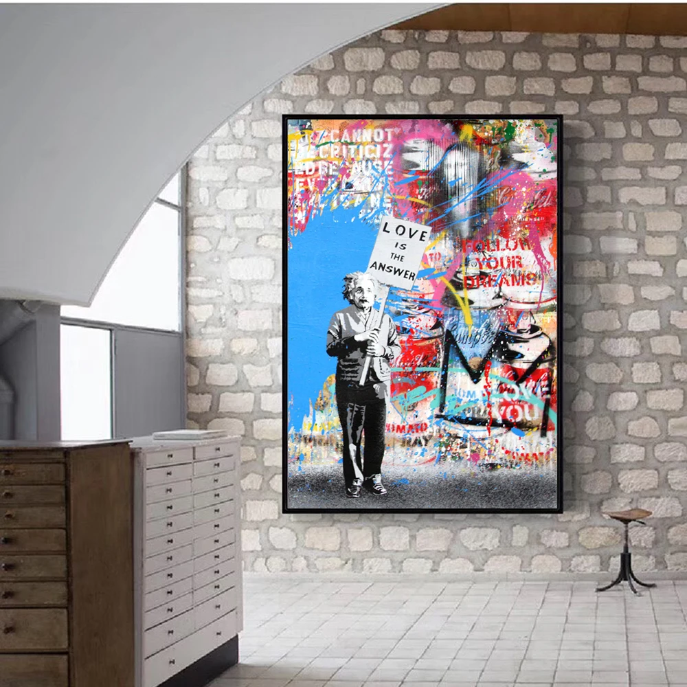 Картины на холсте Любовь-это ответ, настенные граффити, абстрактные поп-арт Эйнштейн, для детской комнаты, Декор