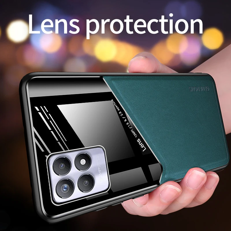 Классический дизайн, с отличным тактильным и хорошим захватомГлянцевый ПК и из искусственной кожи, что делает телефон более роскошнымВстроенный магнитный металлический лист, можно использовать вместе с автомобильным держателем