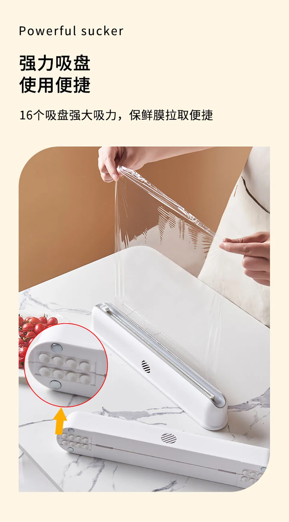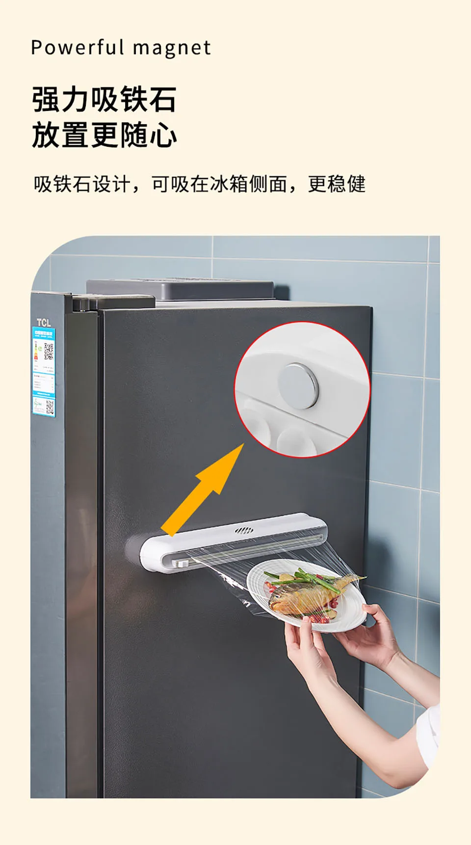 • Изготовлен из АБС-пластика, экологически чистый, без запаха, многоразовый. Контур корпуса более плотно прилегает к изгибу руки, тонкий и элегантный, маленький и гибкий, очень удобно держать. Очистите хорошую текстуру и дизайн паза, Осветите декор для кухни• Вы можете быстро удалить пленку из кухонной коробки для резки и использовать резак для плавного резки пленки слева направо или справа налево• Со скрытой режущей головкой резак не выскользнет при резке, поэтому он очень безопасен в использовании. Маленький резак прекрасно режет его, не складывается и не прилипает к самому пластику над тарелкой. Он может служить долгим сроком службы для домашнего использования• Простота в использовании и экономия времени: дно с 16 микроприсосками, магнитной адсорбцией, можно зафиксировать кухонный счетчик, гладкий рабочий стол, холодильник и т. д. Это поможет вам подготовить или очистить на кухне быстро и эффективно, экономя время• Отличный подарок: идеальный подарок для семьи и друзей, легко носить с собой, также подходит для кемпинга и активного отдыха