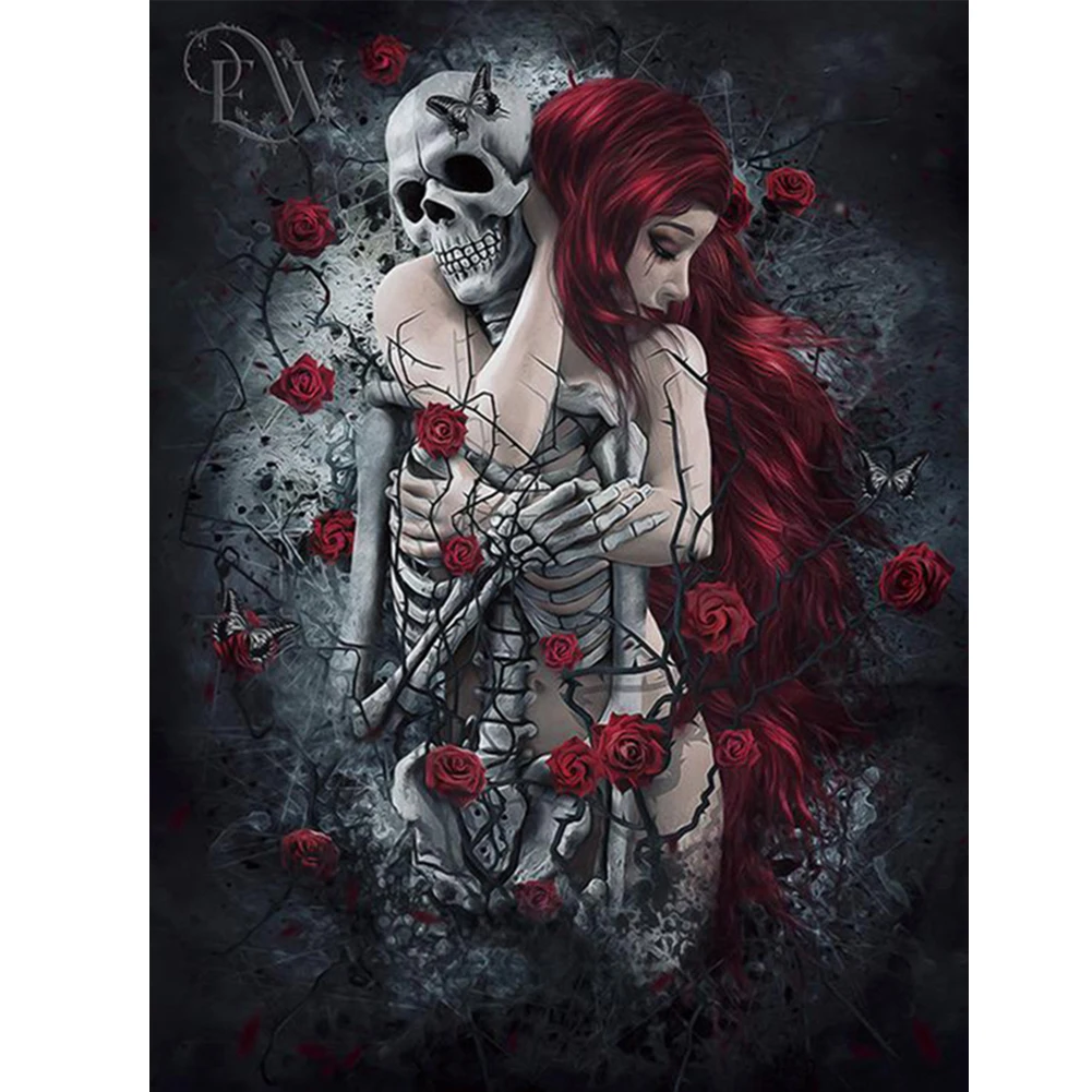 Алмазная краска, набор для снятия стресса, Череп, роза с точечной ручкой, краска по номерам, DIY ремесла, полная дрель, для взрослых, детей, украшение на стену