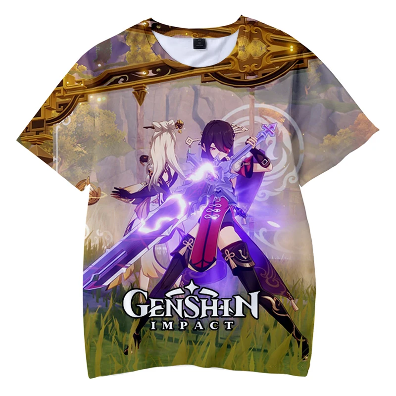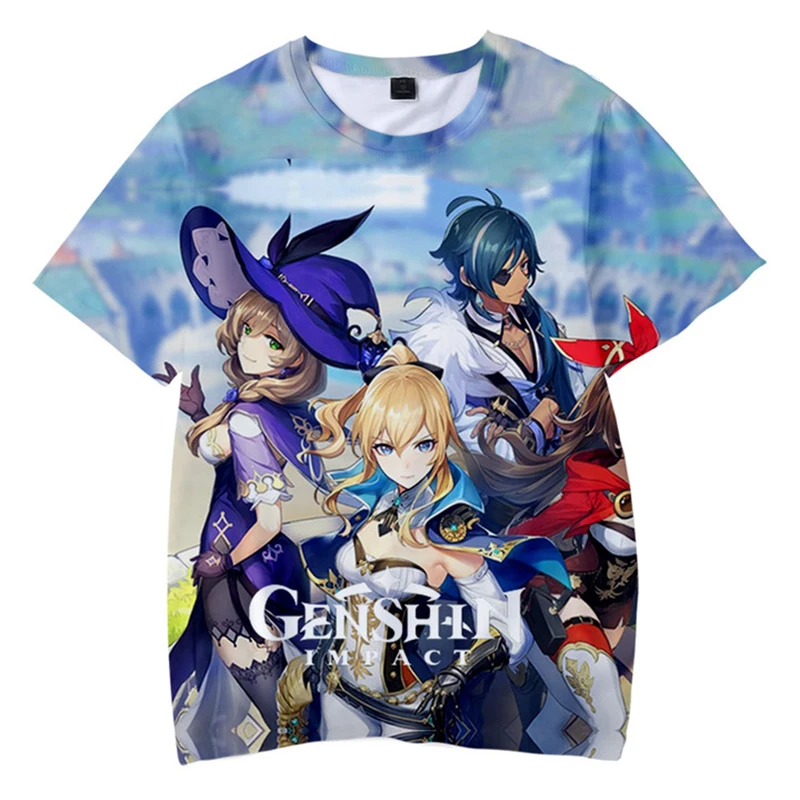 Новая футболка с аниме-играми, уличная одежда с 3D принтом Genshin ...