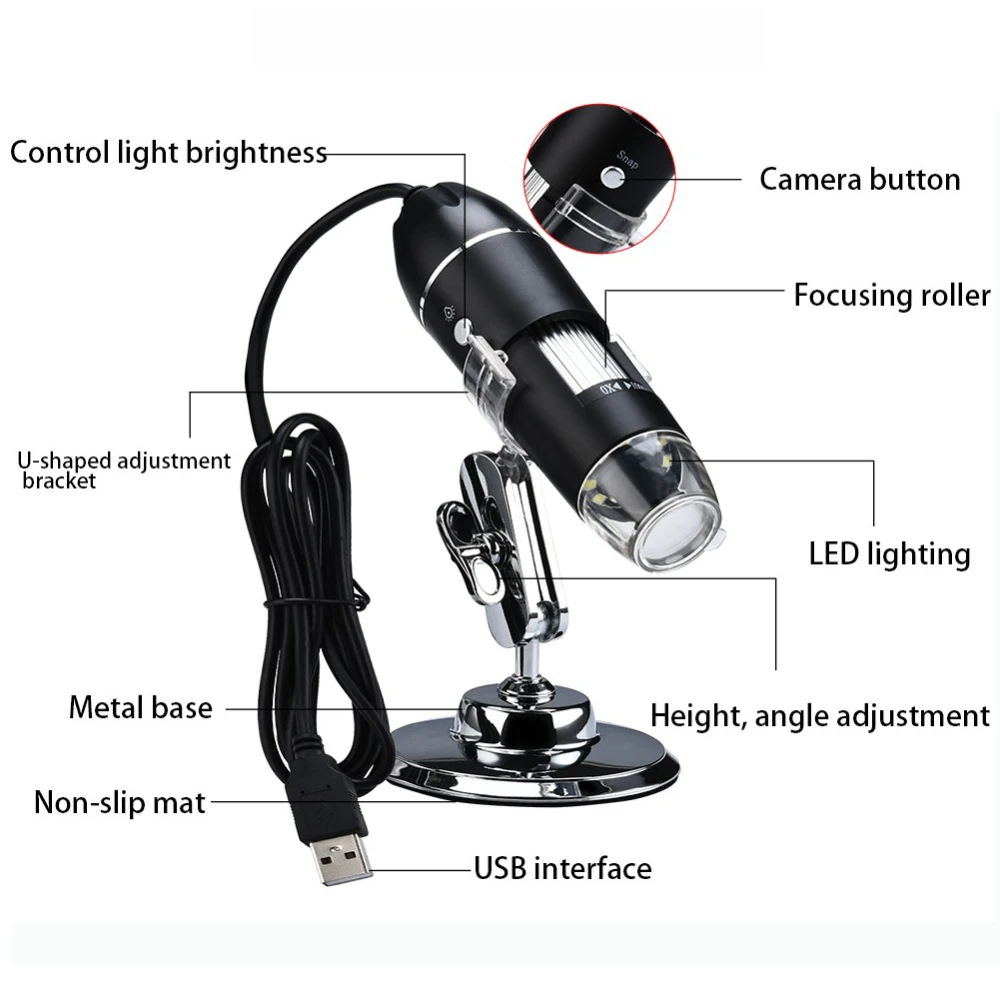 Цифровой микроскоп 1600X, 3 в 1, с USB-разъемом, регулируемая камер...