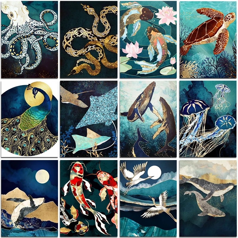 Полноразмерная Алмазная картина с животными, дельфином, павлином, черепахой, Осьминогом, журавлей, вышивка крестиком, мозаика, украшение для дома