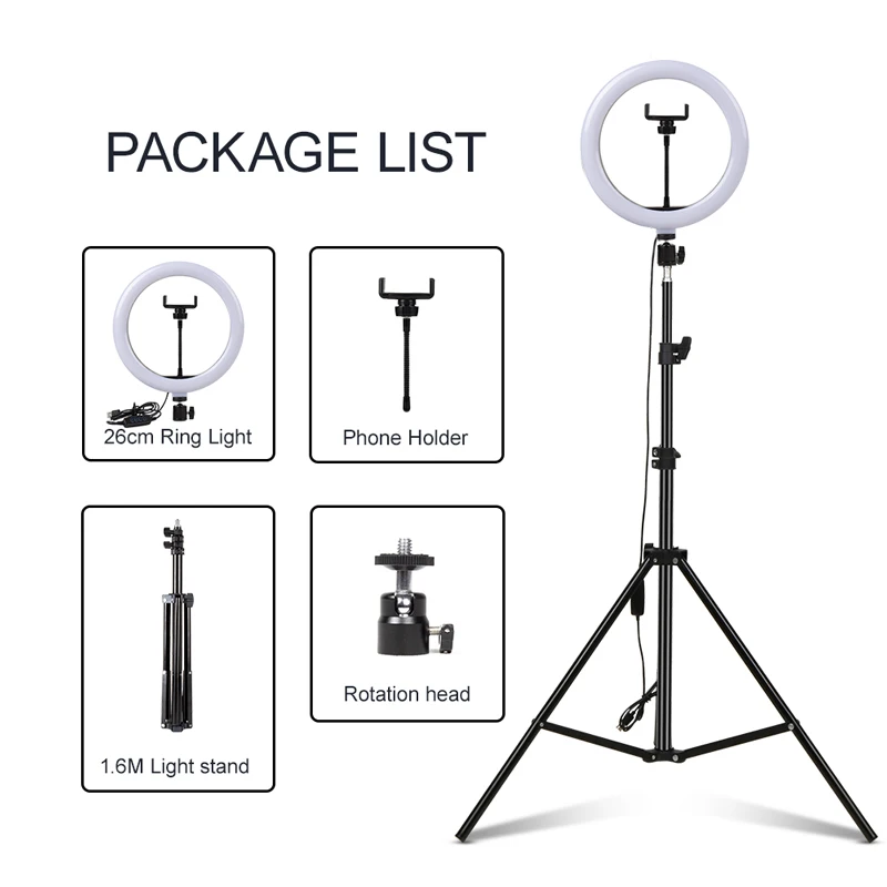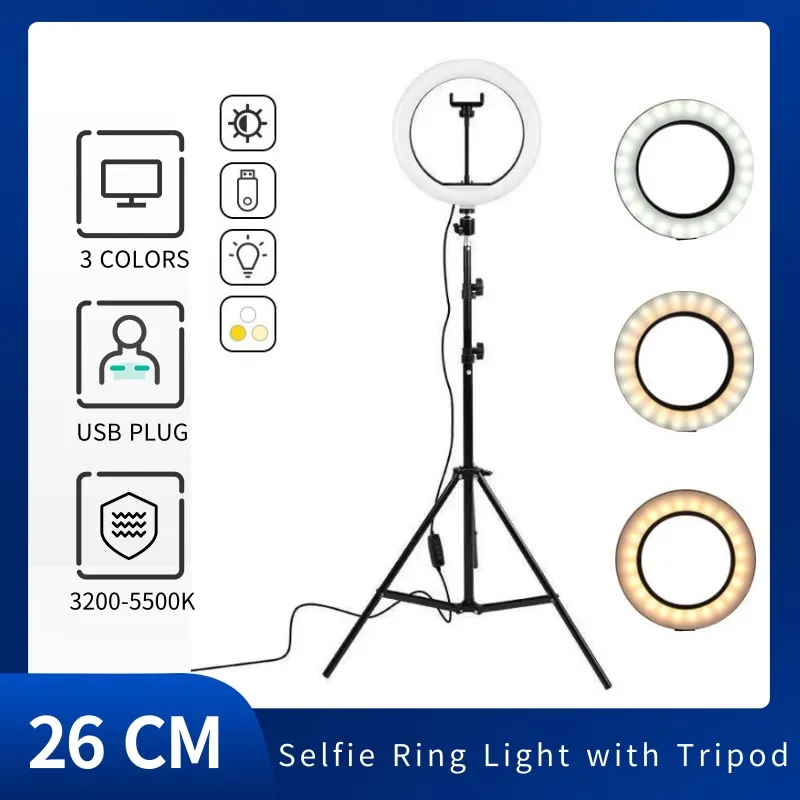 Item name10" LED Selfie Ring Stuido Light Home Lighting Dimmable Round Lamp Tripod Trepied Makeup Led Party Light Phone Stand Holder