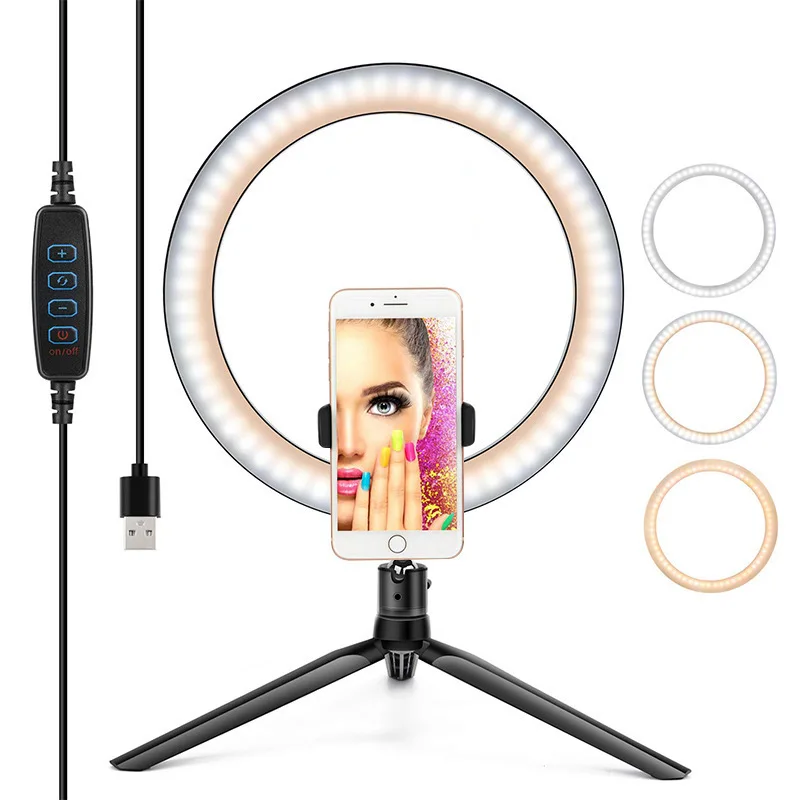 10 "светодиодный светильник для селфи с кольцом, Домашний Светильник с регулируемой яркостью, Круглый штатив, светодиодный вечерние светильник для макияжа, подставка для телефона