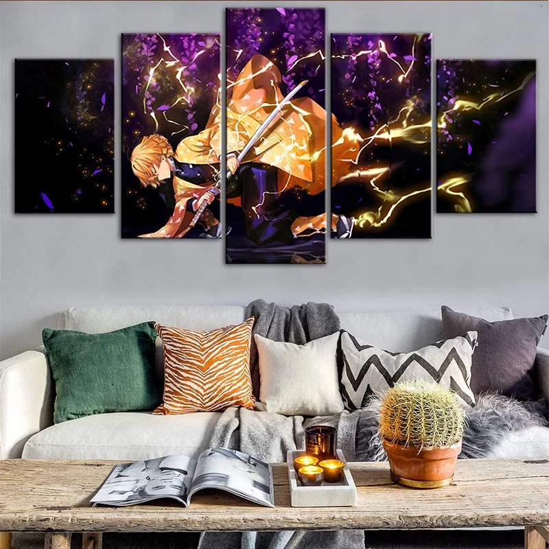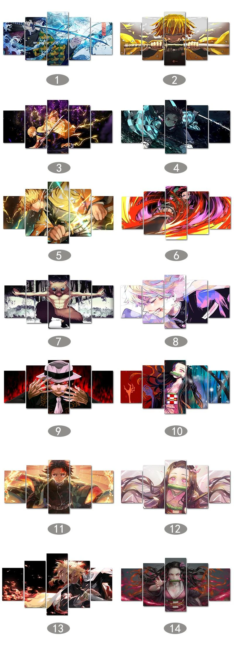 Модульная Настенная картина, 5 шт., плакат с аниме Demon Slayer Kim...