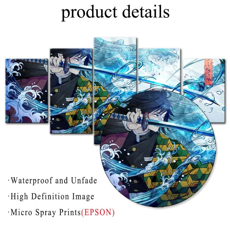 5 панелей Hd Anime Kimetsu No Yaiba, постер на тему рассекания демонов, анимация, картина для мальчика, томиока гиюу, Настенный декор, картины для гостиной