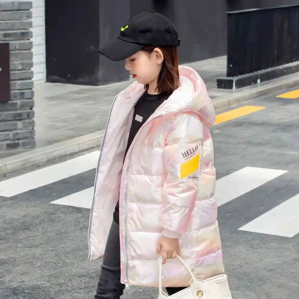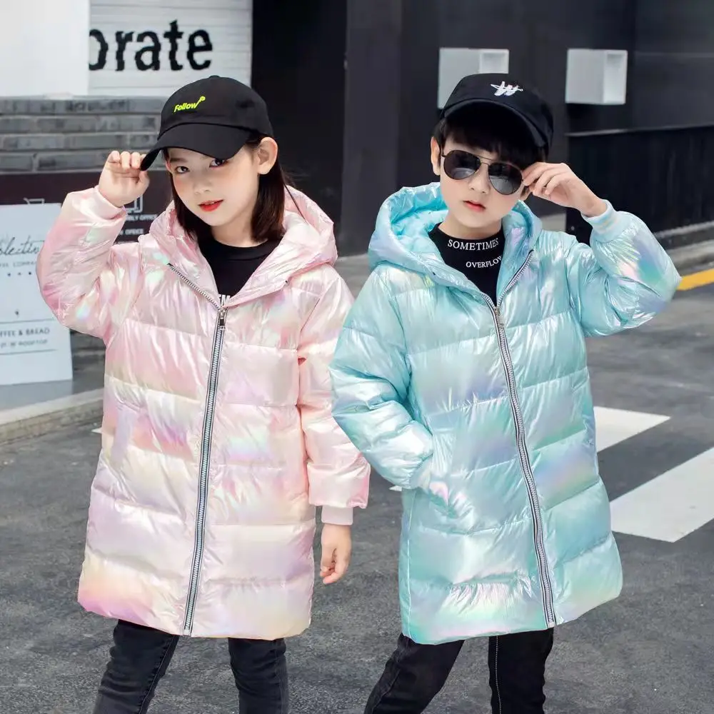 Новинка 2022, Детская куртка на белом утином пуху, толстые цветные куртки с капюшоном для мальчиков и девочек средней длины, Детские водонепроницаемые теплые куртки