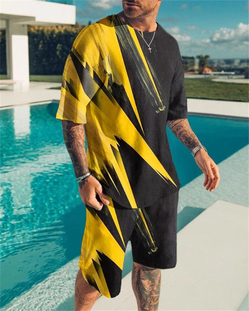 Костюм мужской летний из 2 предметов, футболка и шорты с геометриче...