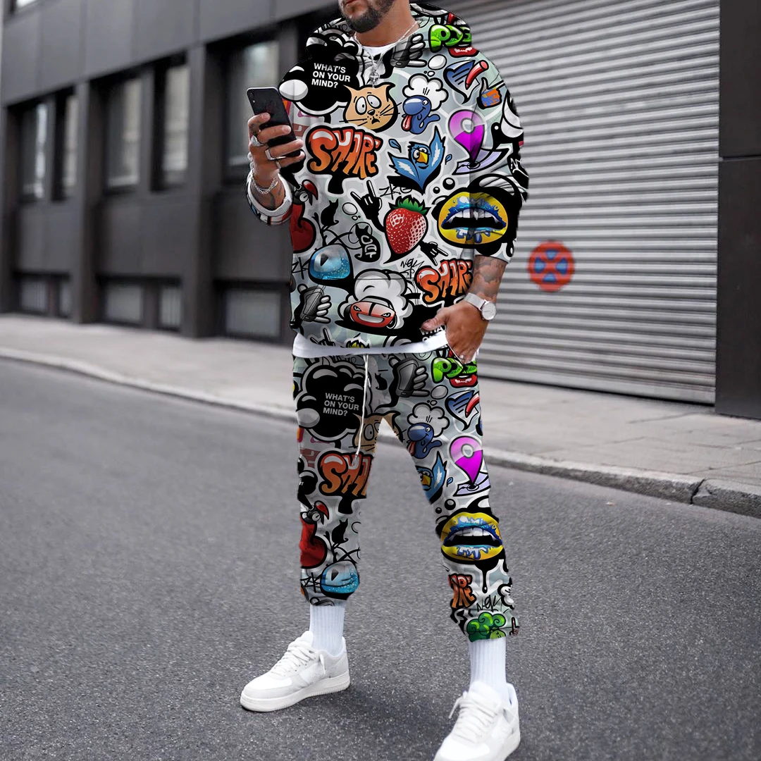 Новинка 2022, свитер с клубничным принтом, мужской повседневный костюм из двух предметов с 3D принтом, мужской костюм большого размера для весны и осени