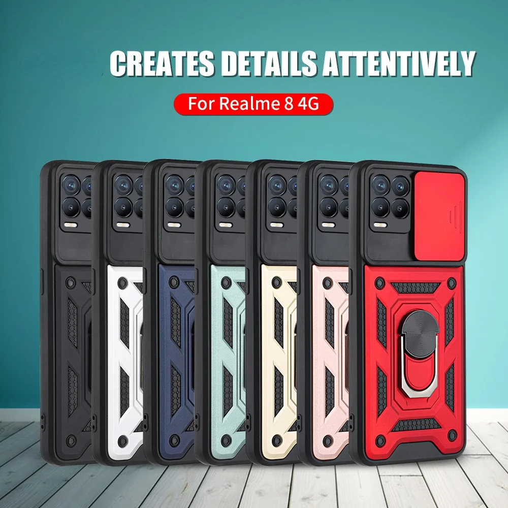 Ударопрочный чехол с кольцом-подставкой для Realme 8 Pro, чехол с защелкой для камеры, задняя крышка для Realmi Realme8 Realmy 8Pro 4G