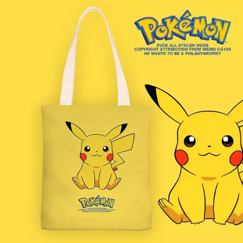 Сумка Покемон Пикачу для мальчиков и девочек, тканевый тоут, большой шоппер для покупок, многоразовая дорожная дамская сумочка на плечо, Студенческая книжная сумка