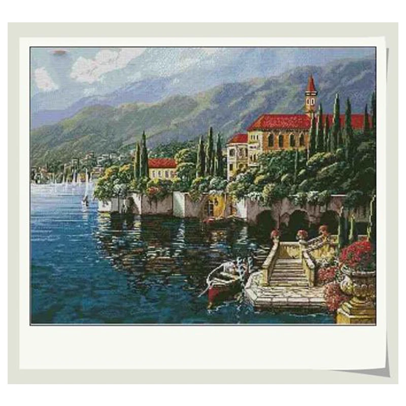 Золотая коллекция Счетный крест стежка набор приморский город настунья город озера деревня горы 58-10