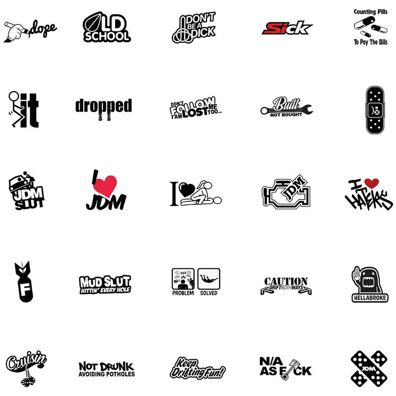 Черно-белые стикеры s граффити в стиле панк JDM, стикеры Bomb для н...