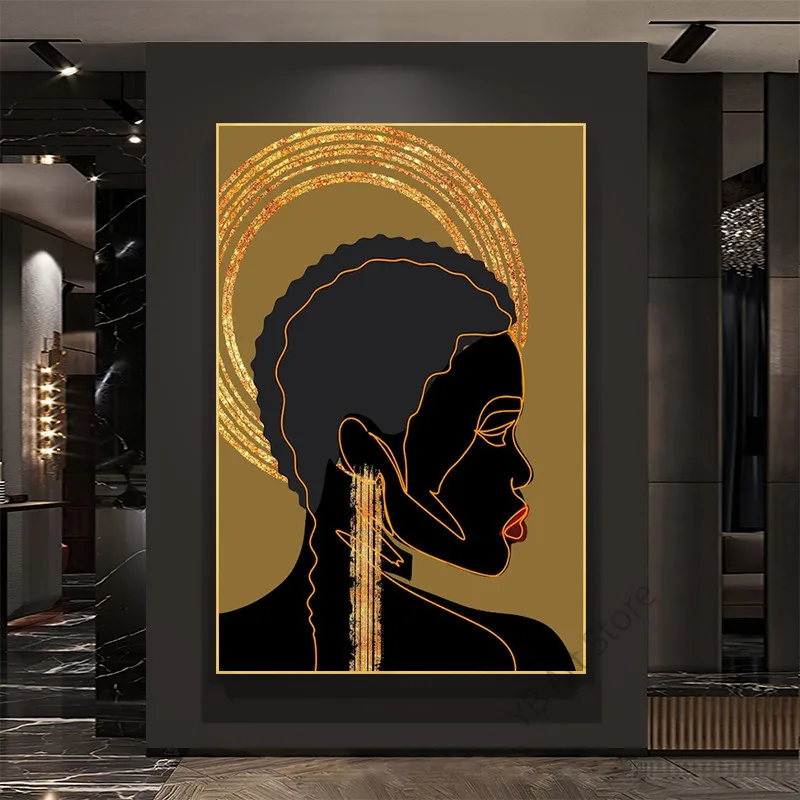 Абстрактный Черный дневной плакат золотой богини, Африканское искусство на стену для гостиной, украшение для дома, спальни, картина для декора