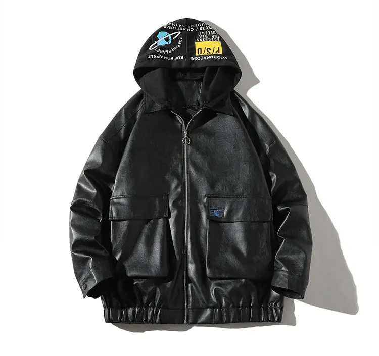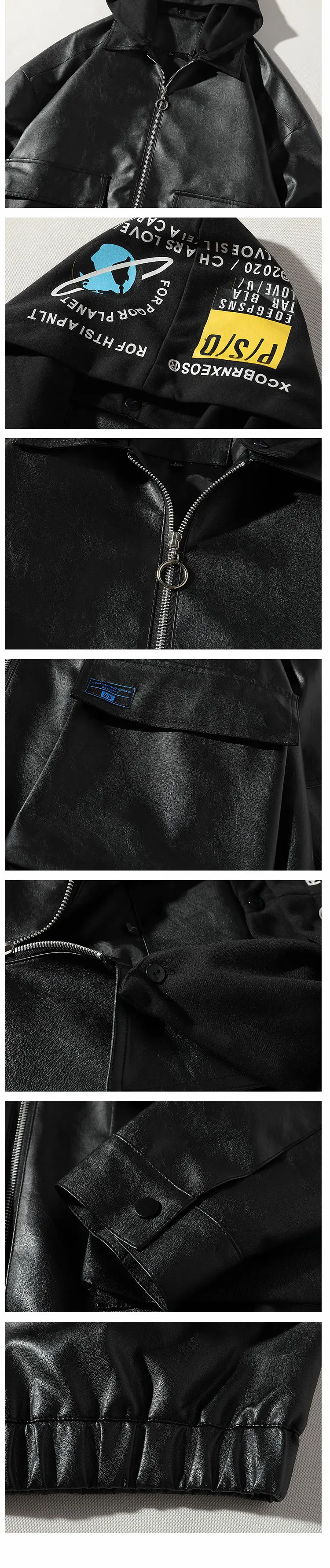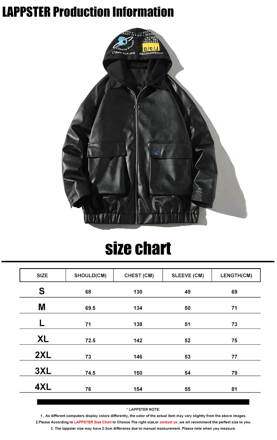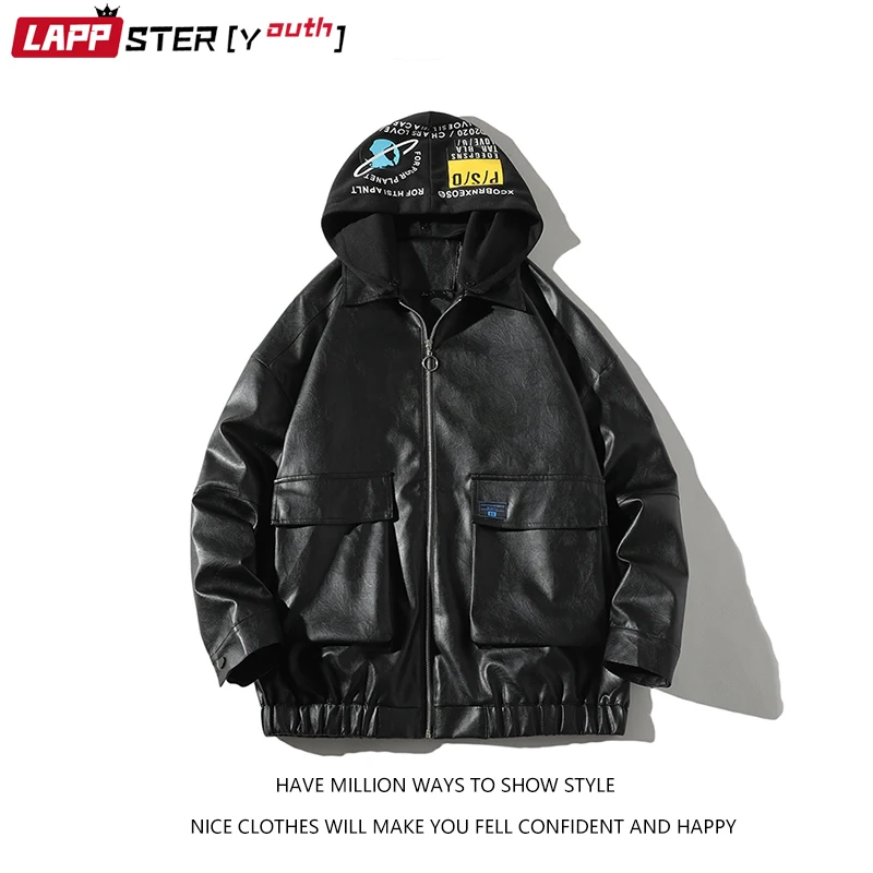 LAPPSTER-Молодежная мужская зимняя кожаная куртка с карманами с капюшоном 2022 Мужская ветровка в стиле Харадзюку с принтом букв Мужская плотная Корейская Шуба с мехом