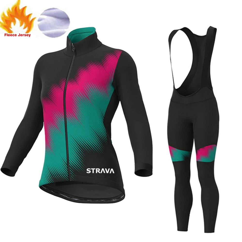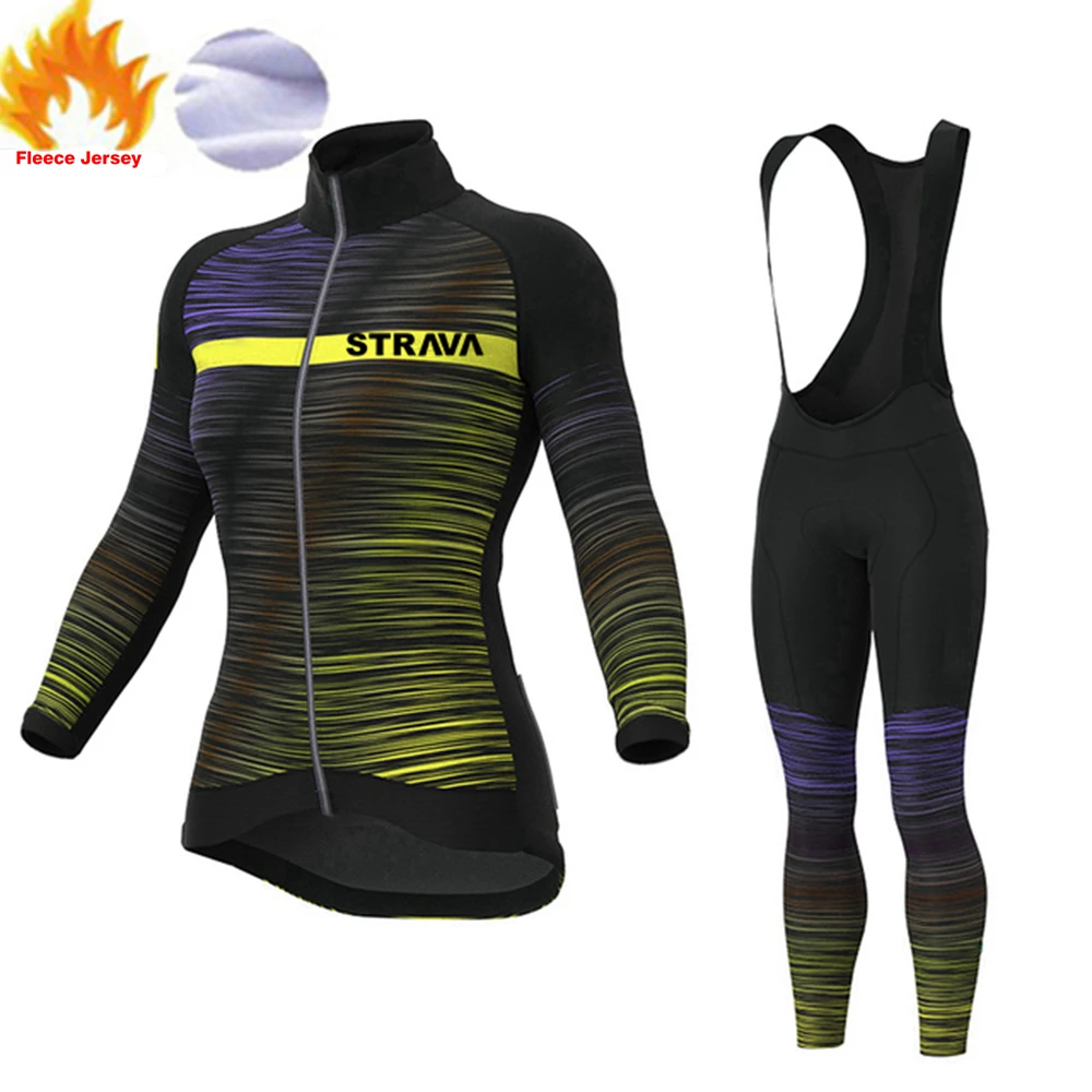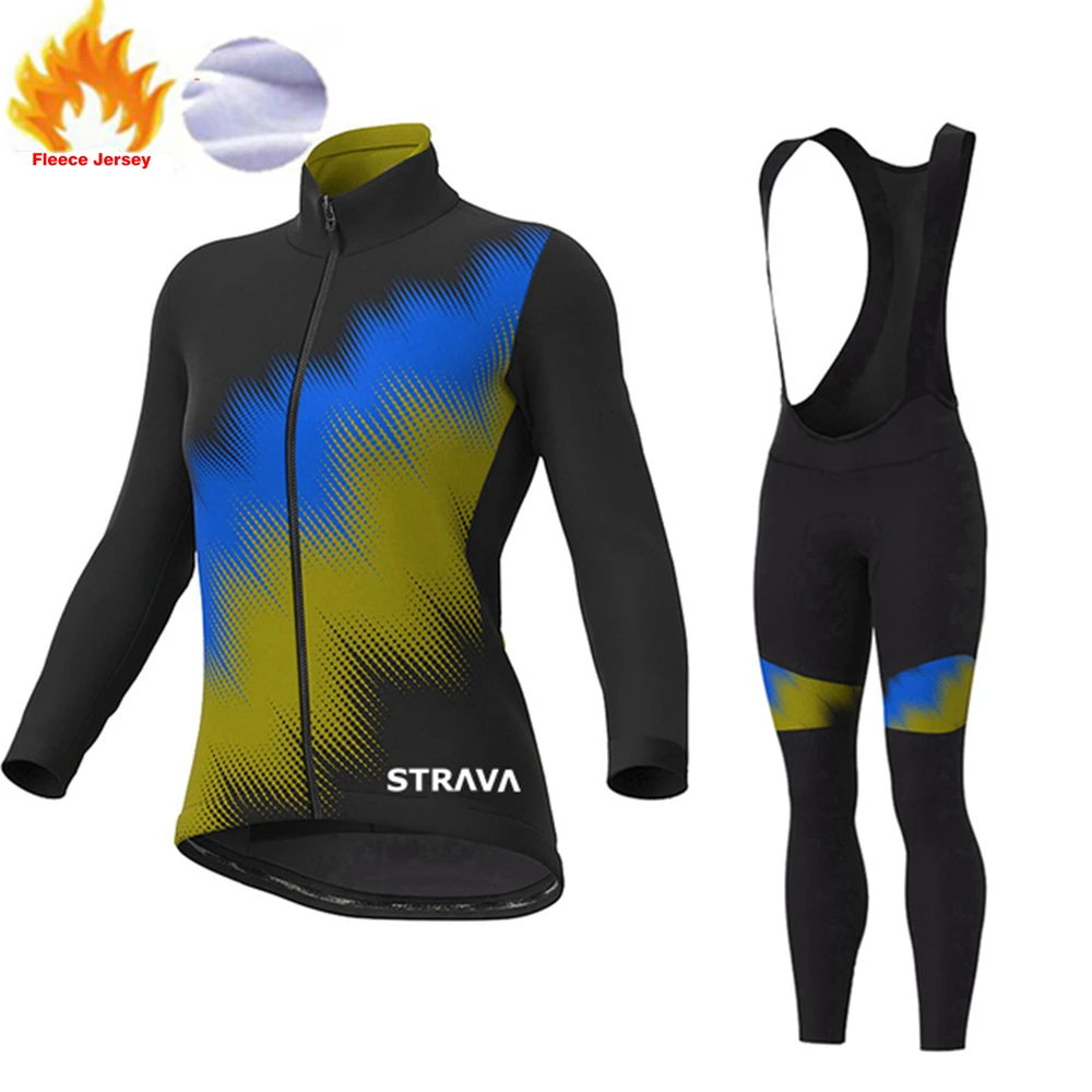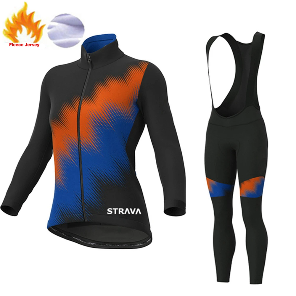 Strava 2022 зимний теплый флисовый с длинным рукавом Велоспорт Джерси комбинезон брюки Униформа Комплект Mtb велосипед Топ костюм Женская велосипедная одежда Shir