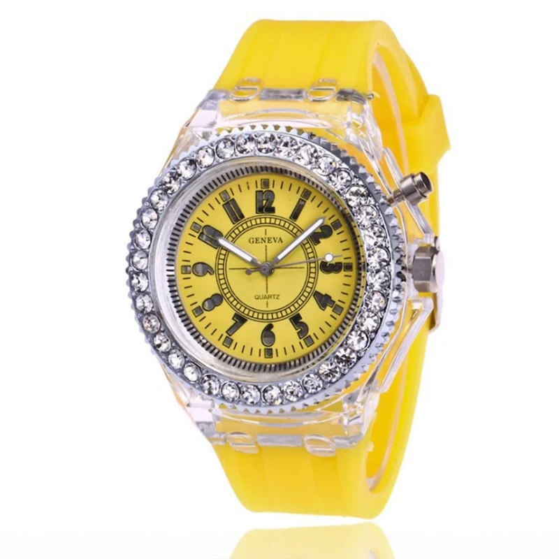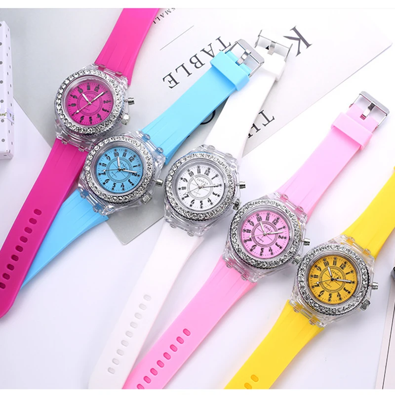 Женские кварцевые часы, со светодиодной подсветкой, цветные, спорти...