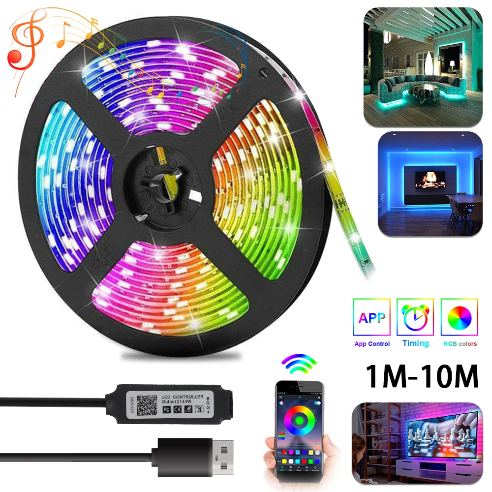 Светодиодная лента RGB 5050 с Bluetooth-управлением, гибкая лампа с диодами для праздников, освещение для спальни, телевизора, рабочего стола, 5 в постоянного тока, 1-10 м