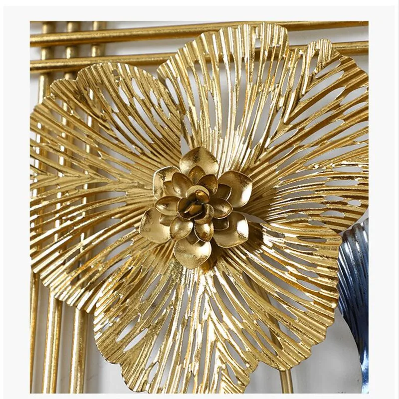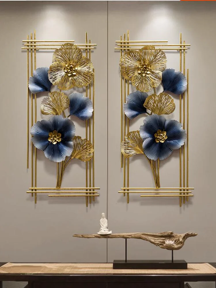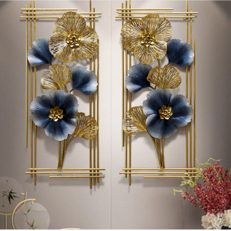Обои из кованого железа с синими золотыми листьями гинкго, настенны...