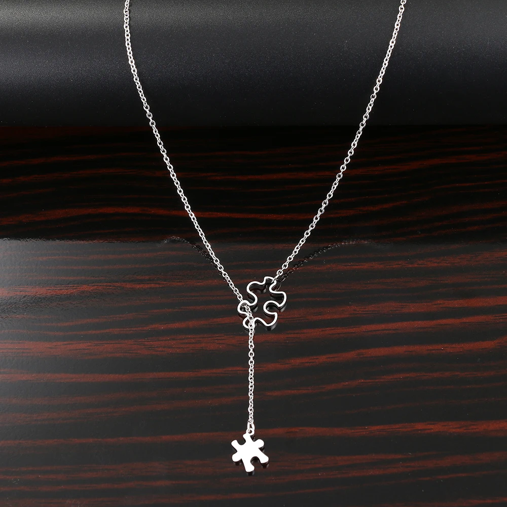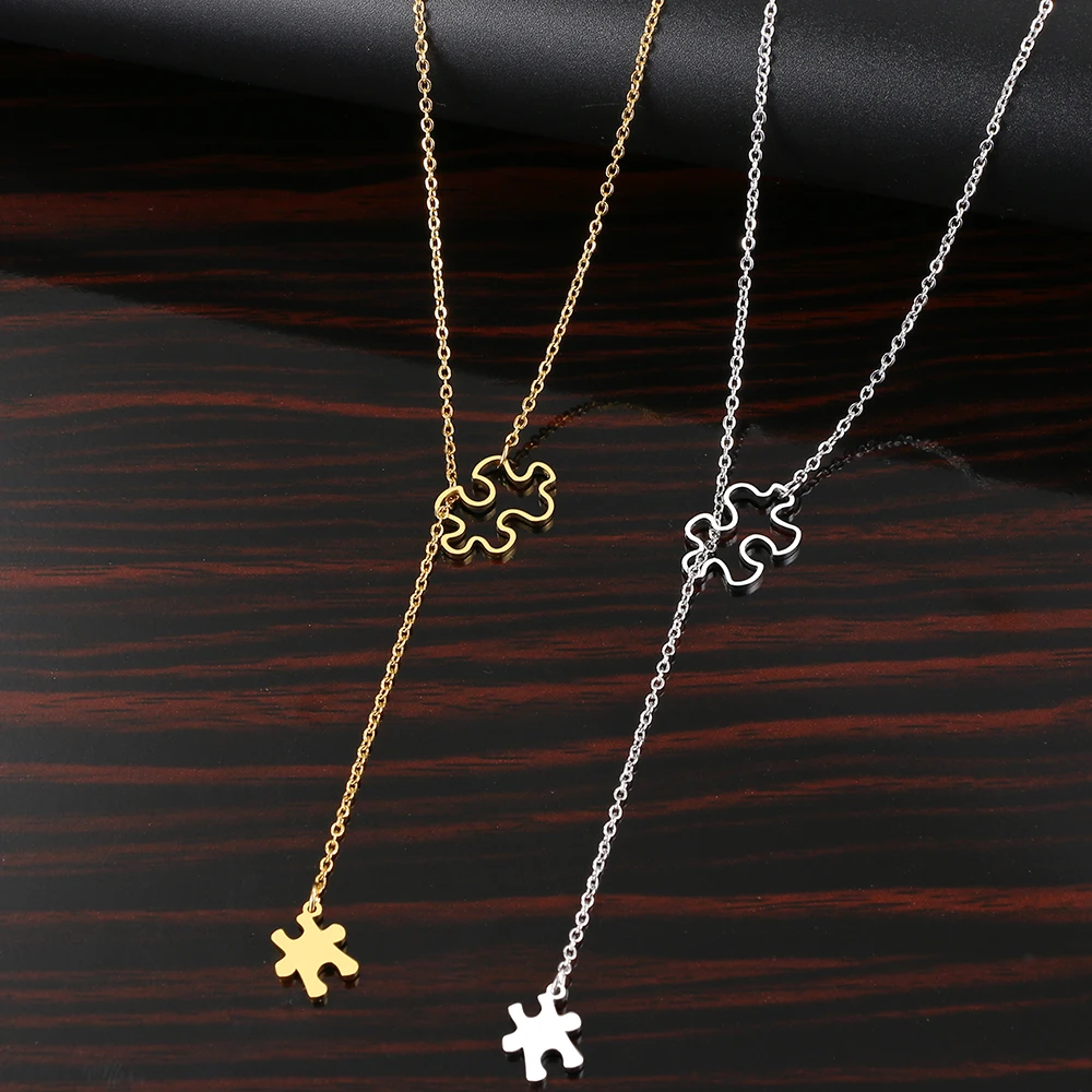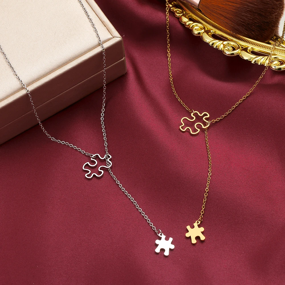 Ожерелья из нержавеющей стали, простой пазл, двойные аксессуары, подвеска-цепочка, чокер, очаровательное модное ожерелье для женщин, ювелирные изделия, подарки
