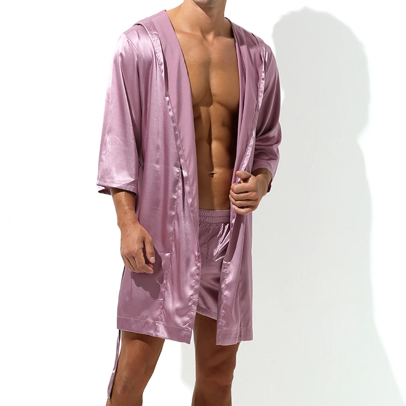 Халат банный Мужской Шелковый, пикантный банный халат с коротким ру...