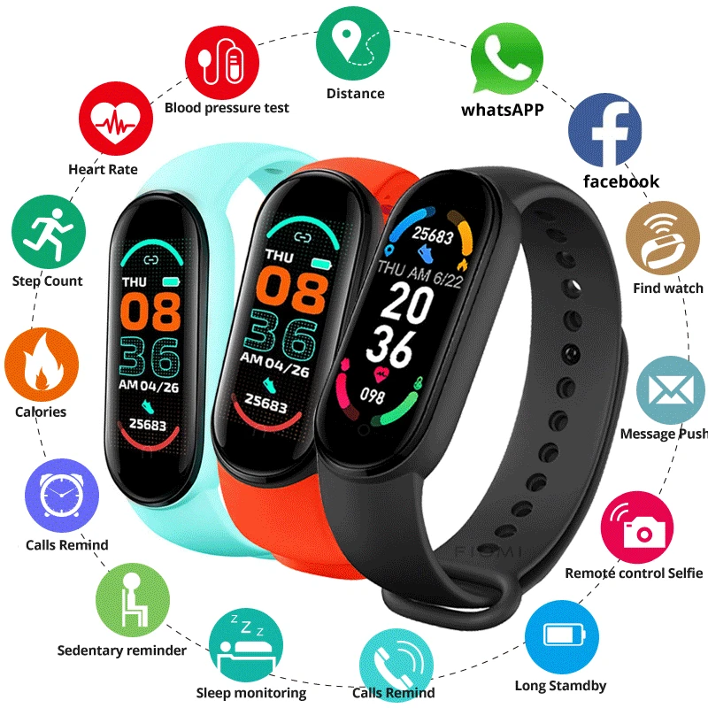 Смарт-часы Xiaomi 2021 M6 Band для мужчин и женщин Bluetooth Smartw...
