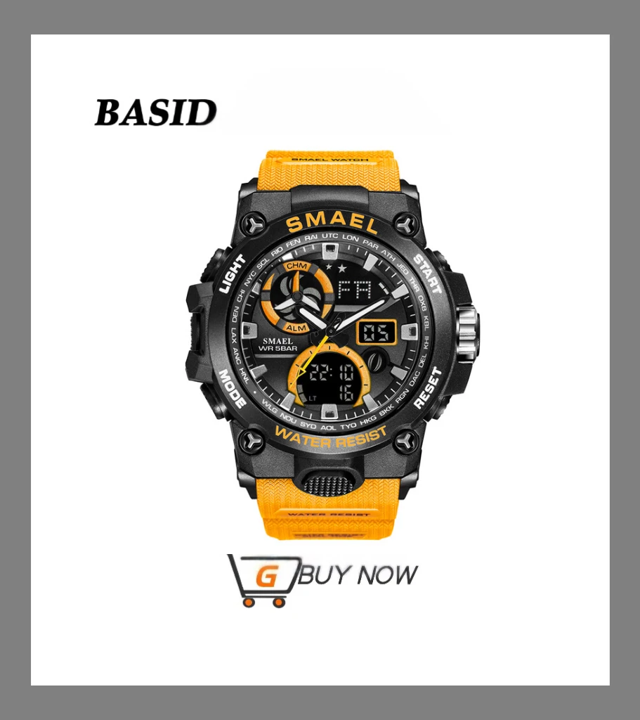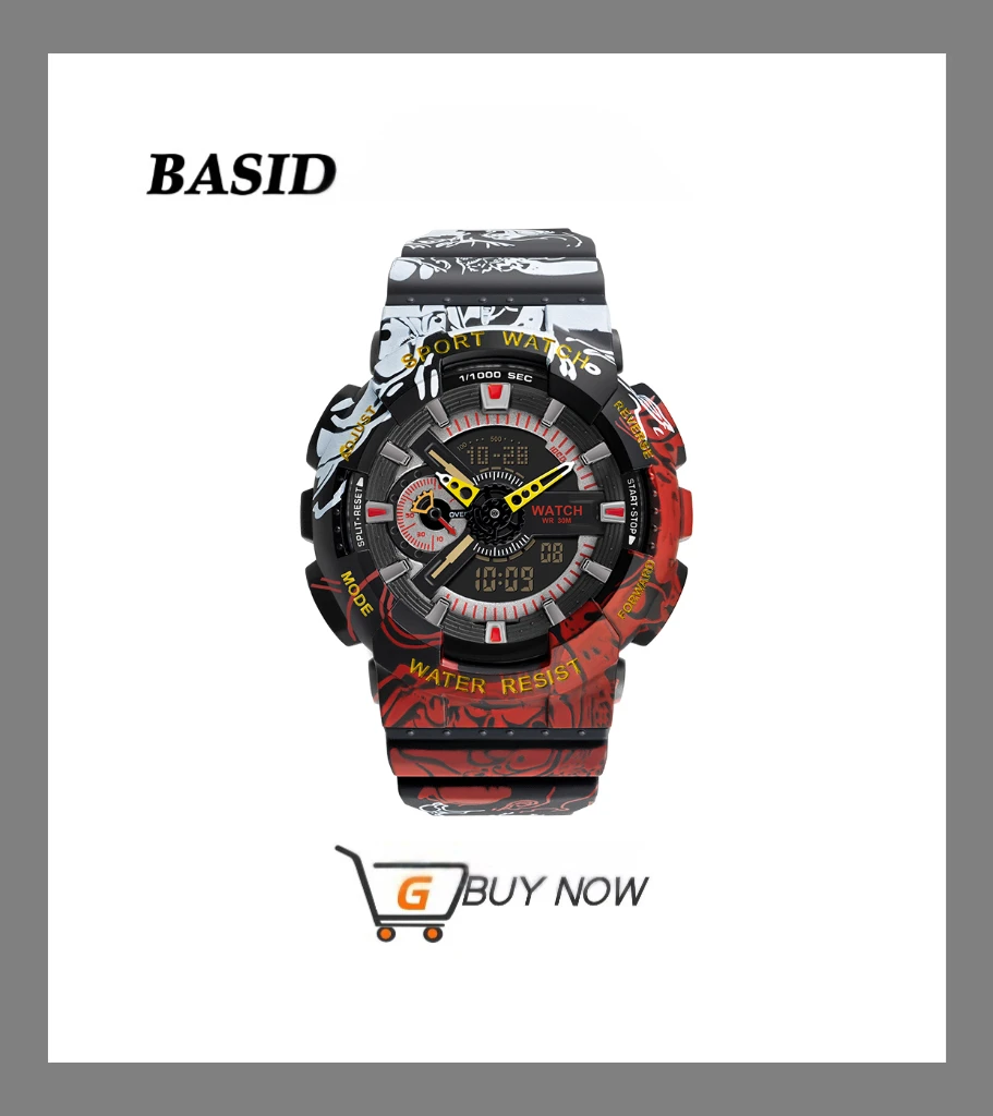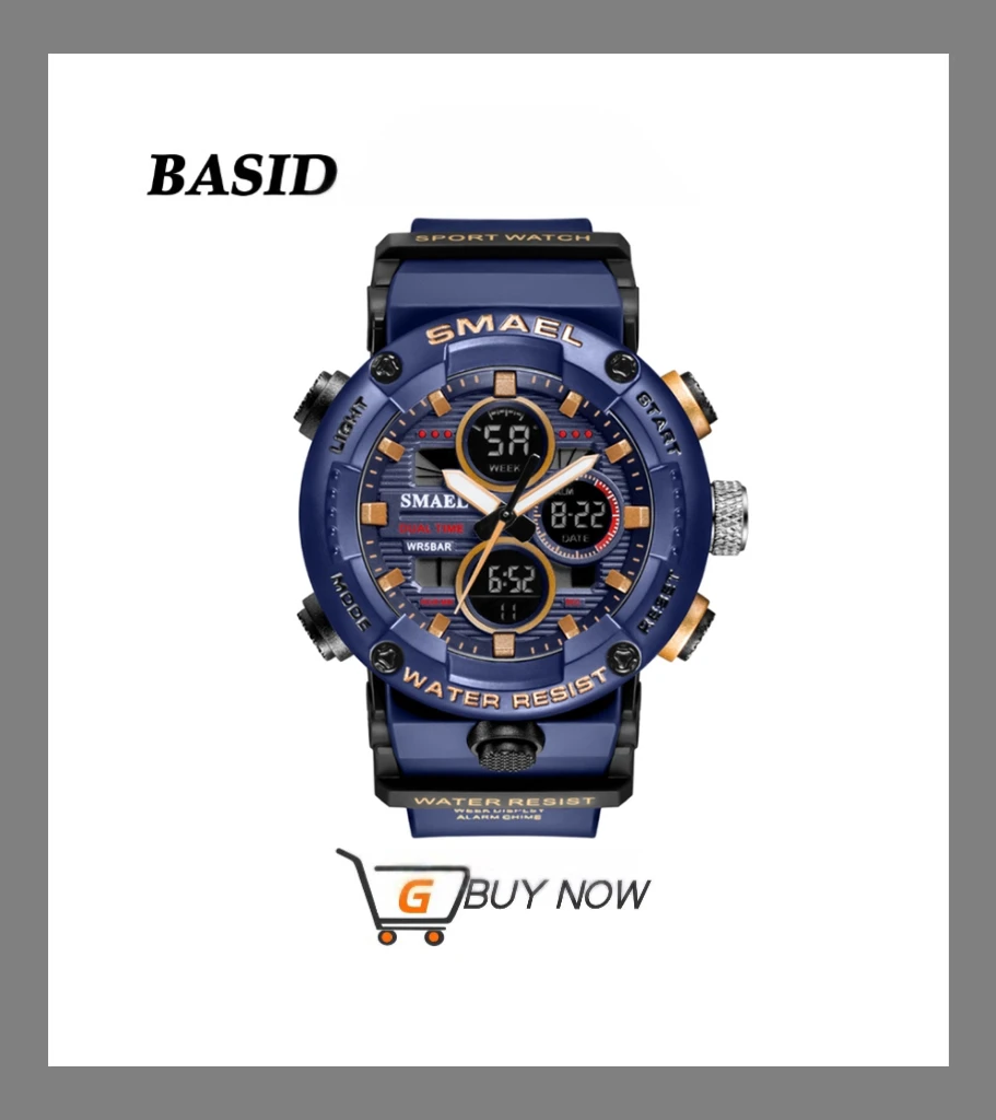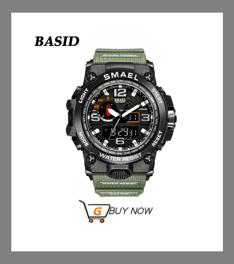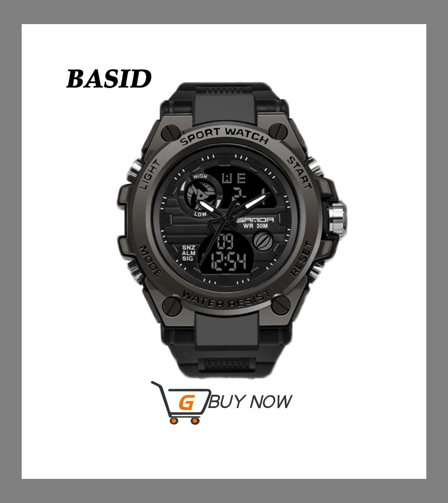 Часы наручные BASID Мужские Цифровые, спортивные водонепроницаемые в стиле милитари, с секундомером, 1802