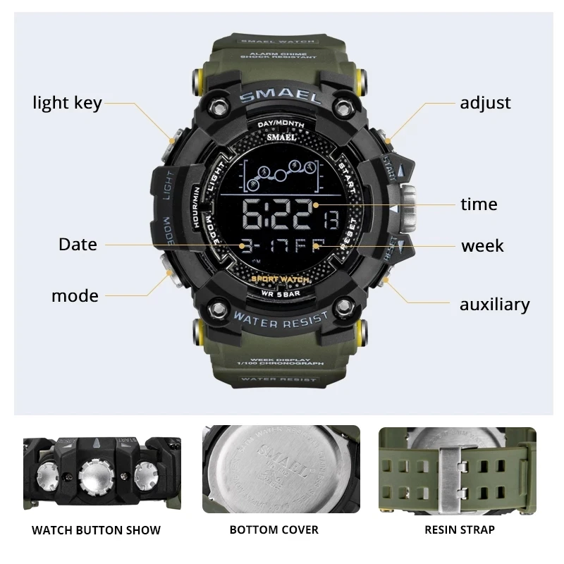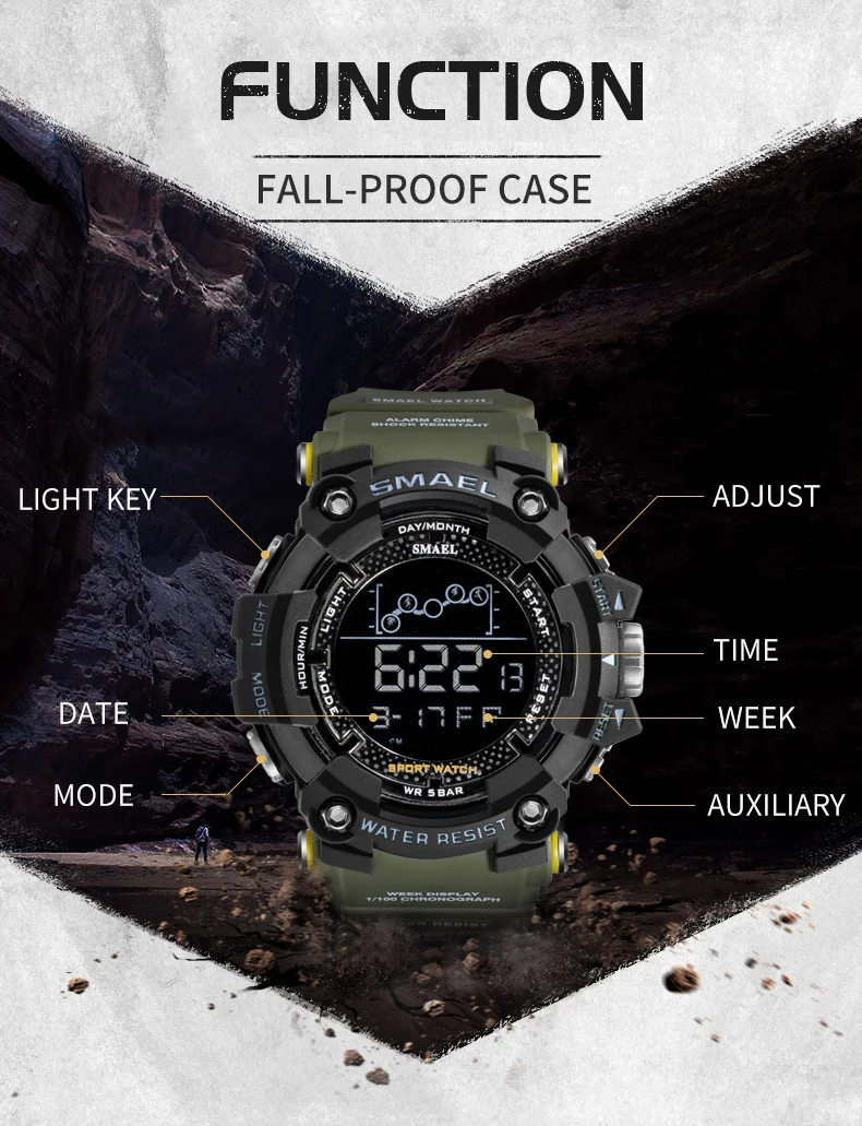 SMAEL Мужские Часы Военные Водонепроницаемые Спортивные Наручные Ча...