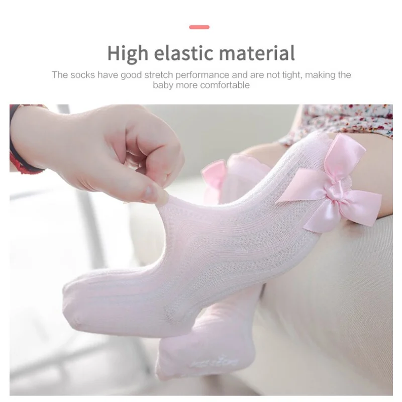 2022 детские носки для малышей девочек с большим бантом до колена длинные мягкие хлопковые кружевные Детские трикотажные изделия Meisje оптом детская одежда