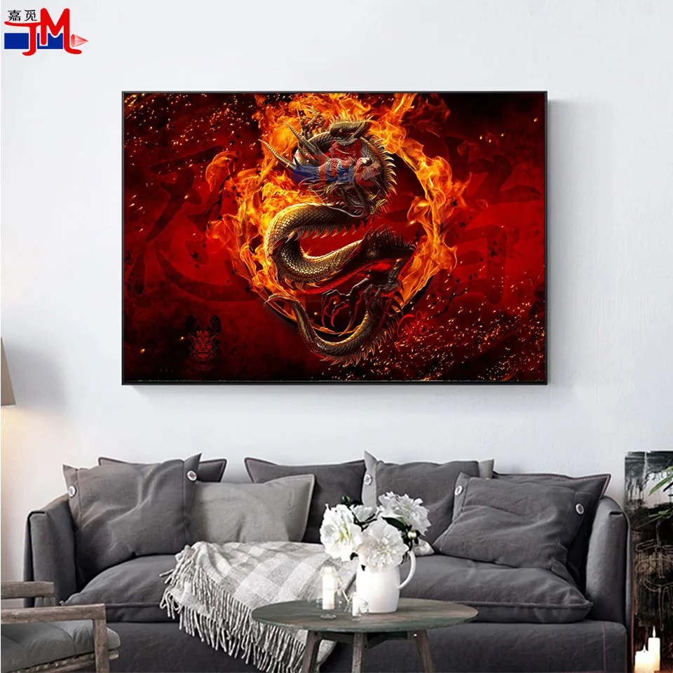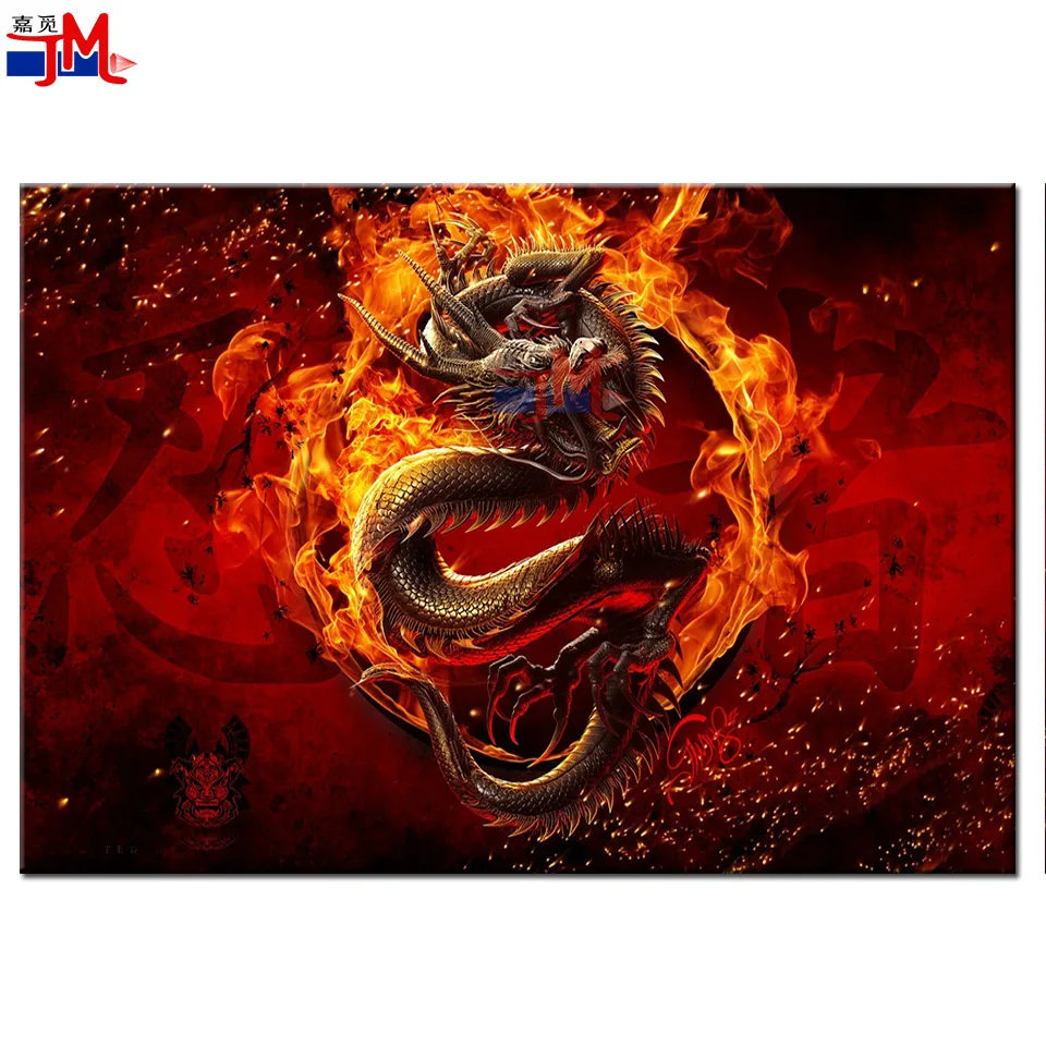 Алмазная живопись с пламенем дракона, полная, квадратная, круглая Алмазная вышивка в китайском стиле, мозаика из алмазов сделай сам, ручная работа, животные, пазл, Декор