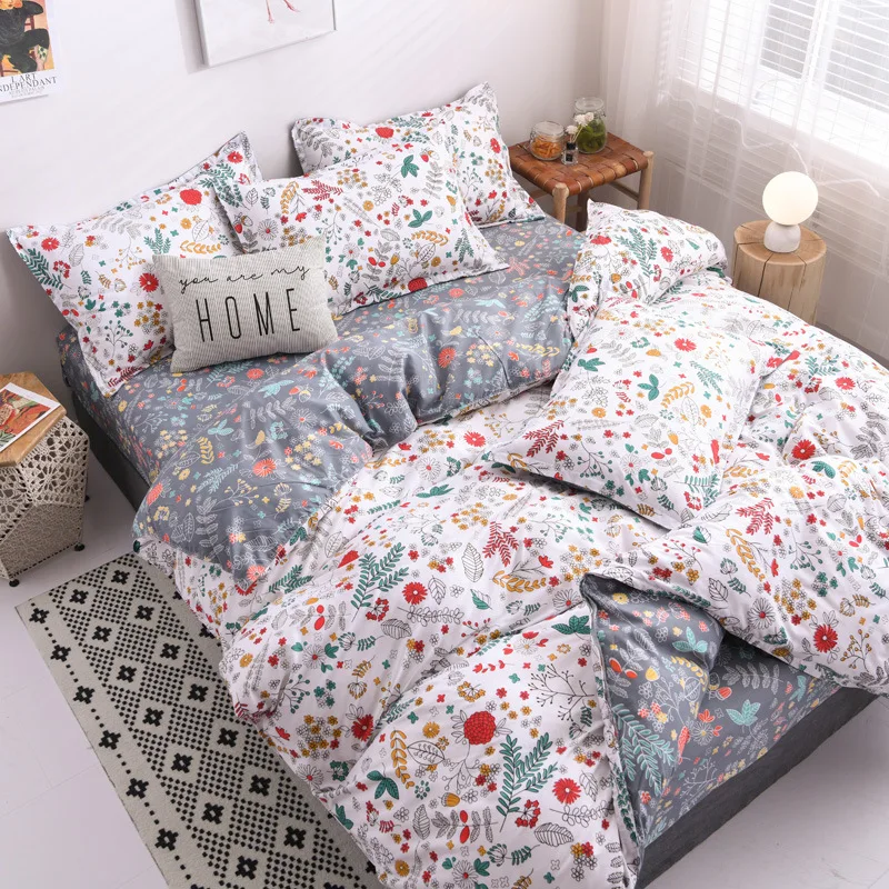 34 шт., постельное белье с 2 наволочками, с цветочным принтом