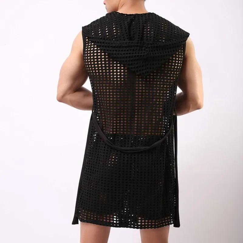 Мужские халаты, брендовый пикантный мужской сетчатый халат, одежда ...