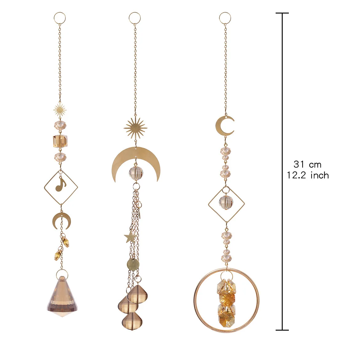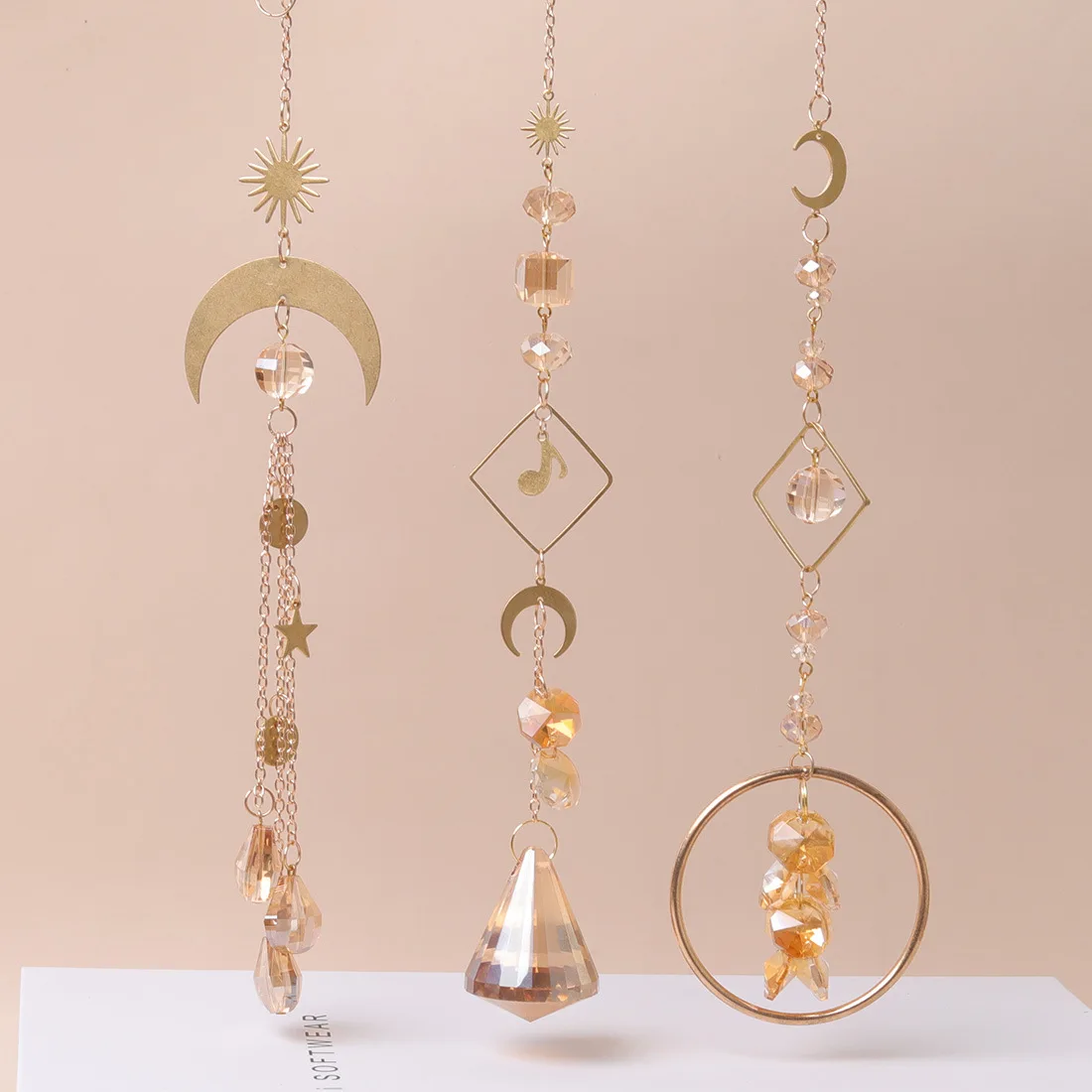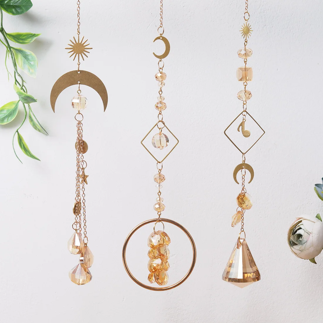 Ловец Солнца, золотой с кристаллами, луна, небесный свет, отражение Солнца, кристалл, радуга, подвесные бусины, призма для окна, стены дома